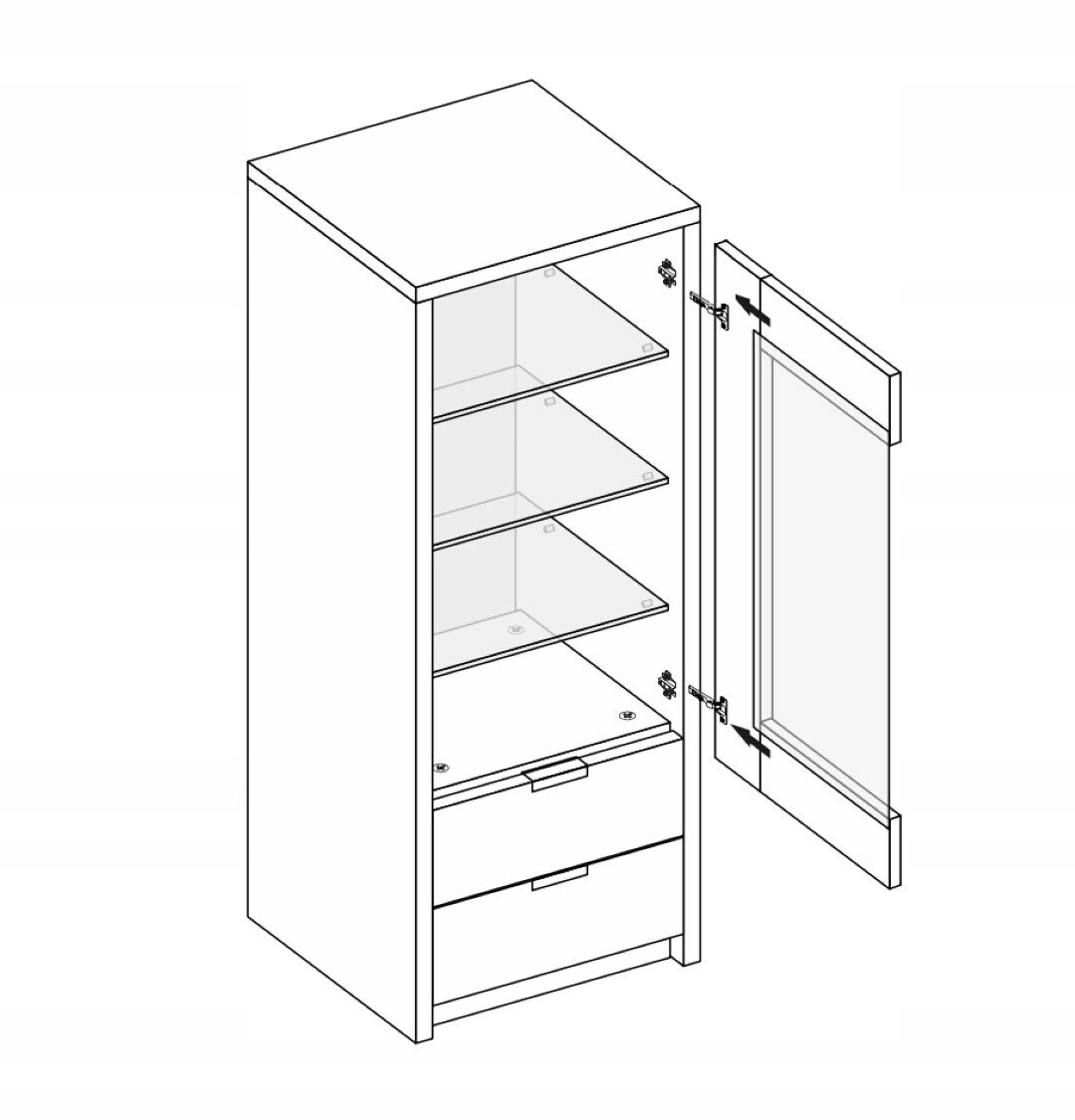 Vitrína Tissa je perfektní volbou pro ty, kteří ocení pořádek a stylový vzhled interiéru. Čtyři dobře uspořádané police za skleněnými dvířky nabídnou prostor pro vystavení oblíbených dekorací, suvenýrů nebo knih. Dvě zásuvky ve spodní části nábytku umožní diskrétní uložení dokumentů, textilu nebo doplňků, které chcete mít vždy po ruce, ale mimo dohled.