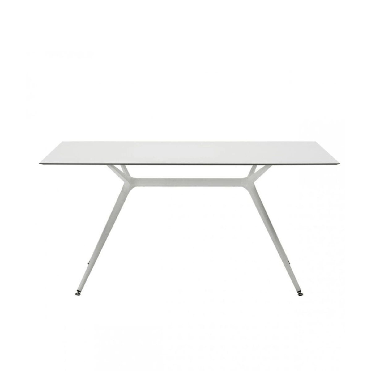 Stůl Metropolis v bílé barvě jekombinací elegance, modernosti a funkčnosti. Poskytuje kompaktnílaminovaný povrch stolové desky, který dokonale ladí s matně lakovanou ocelovou konstrukcí a vytváří tak jedinečný charakter.