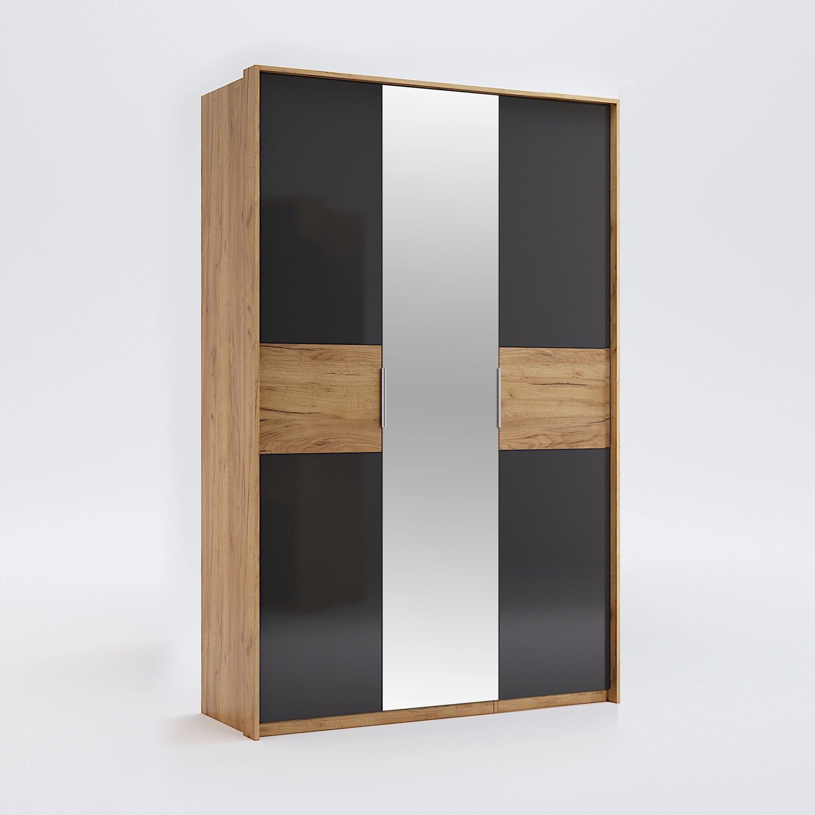 Šatní skříň Matle 3-dveřová se zrcadlem je dokonalým spojením funkčnosti a skandinávského stylu, navržená s ohledem na ložnici nebo šatnu. Vyniká přirozeným odstínem šedého dubu, velkým zrcadlem na přední straně a praktickým vnitřním uspořádáním s policemi a tyčí na oblečení. Díky výšce přes dva metry a šířce téměř 140 cm nabízí dostatek úložného prostoru a zároveň si zachovává harmonický, minimalistický vzhled.