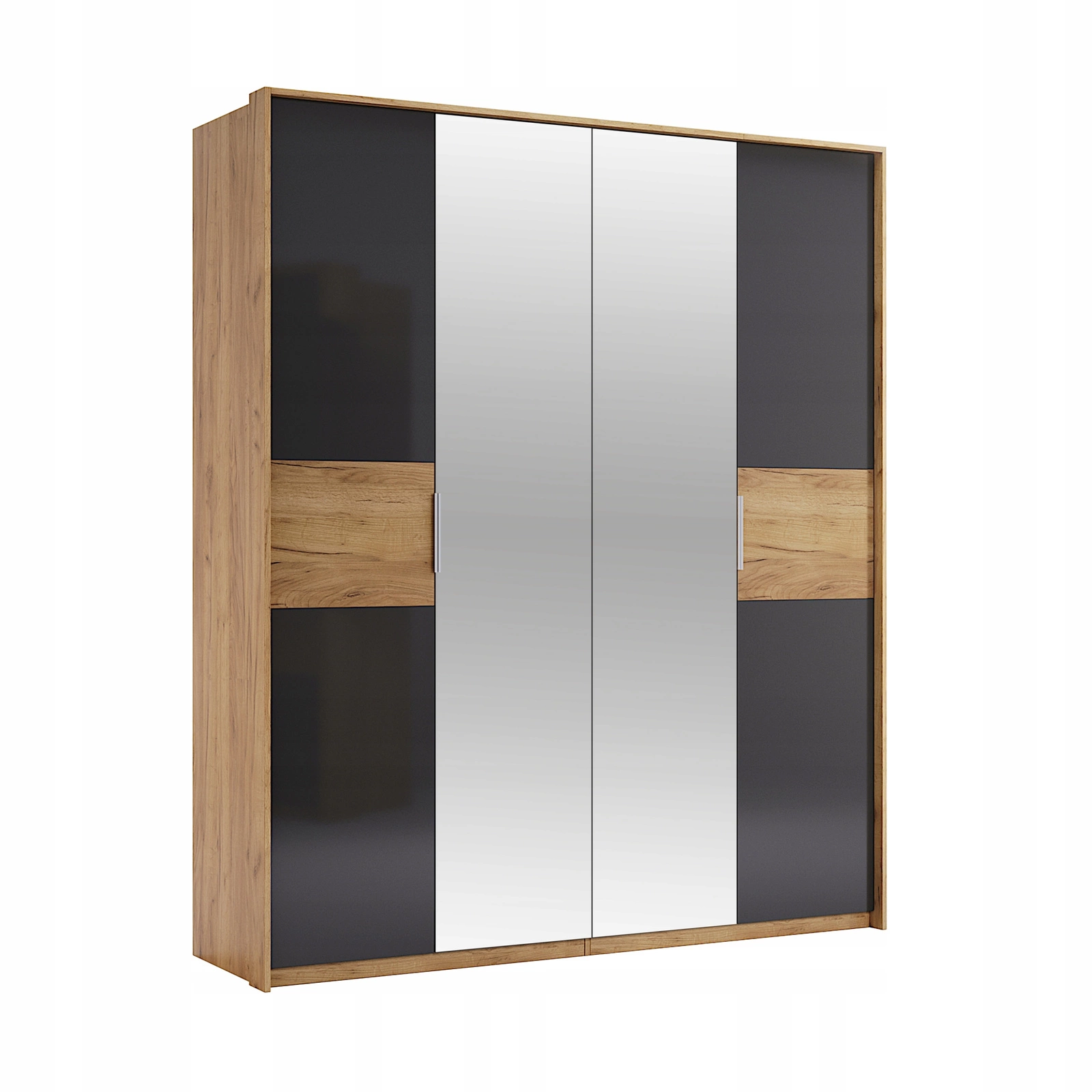 Šatní skříň Matle se 4 dveřmi a zrcadlem v odstínu šedý dub je moderní nábytek do ložnice, který spojuje funkčnost s elegantním designem. Díky čtyřem širokým dveřím, zrcadlu na čelní straně a praktickým policím poskytuje pohodlné úložné prostory a pomáhá udržet perfektní pořádek každý den. Polomatné provedení dokonale zapadá do aktuálních interiérových trendů.