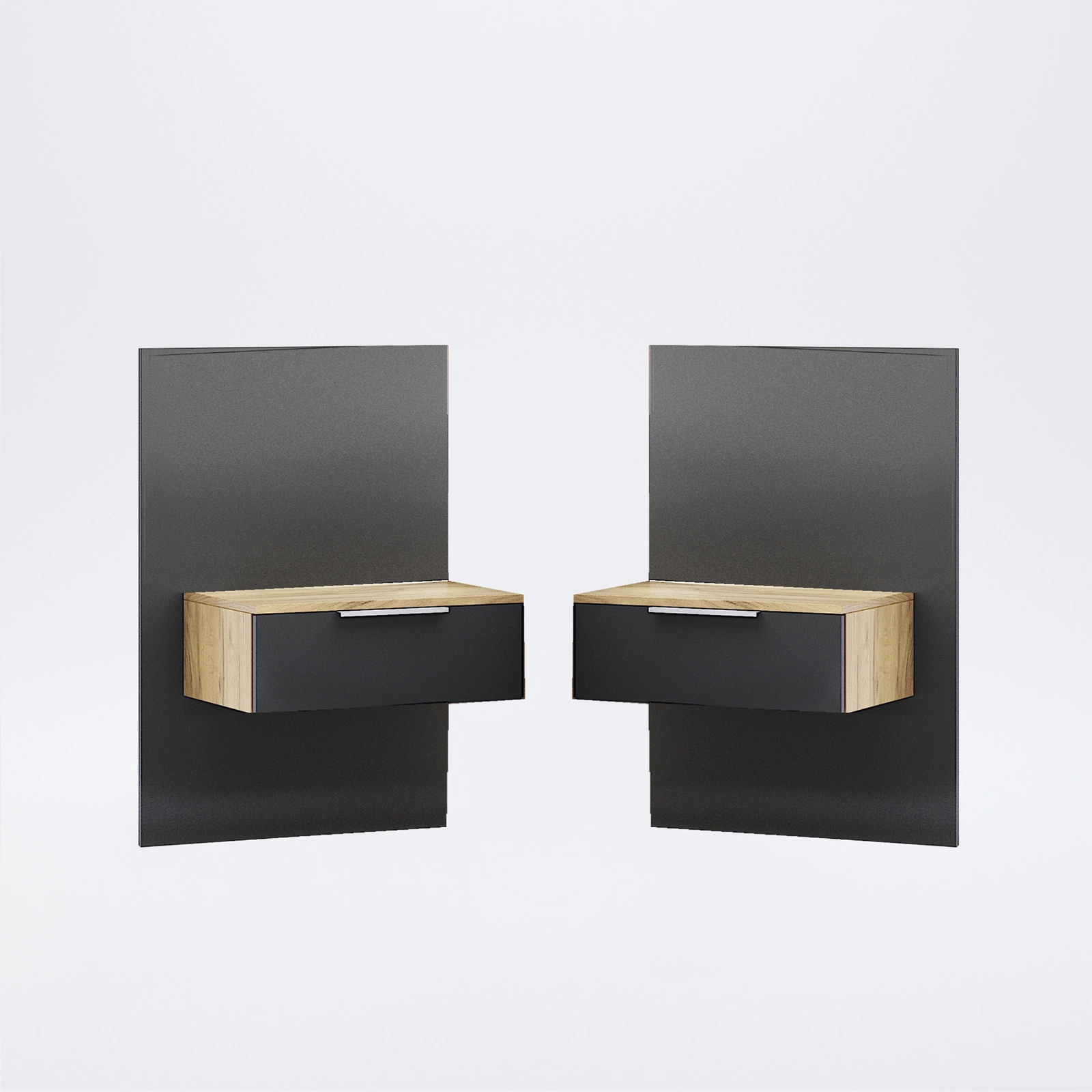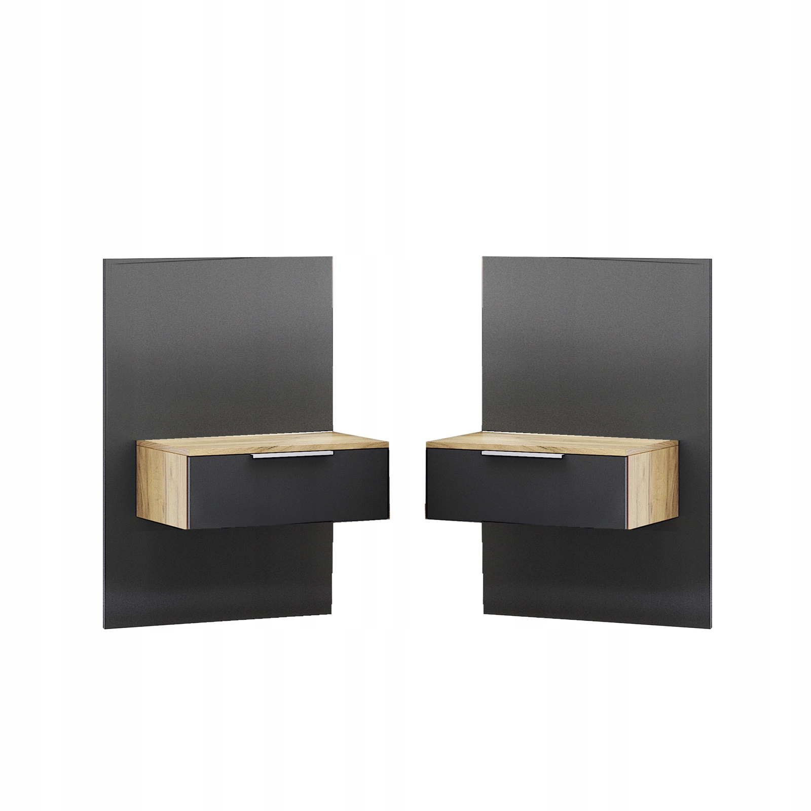 Každý noční stolek Lana je vybaven jednou širokou zásuvkou, která usnadňuje ukládání a organizaci drobností. Nábytek je vyroben z odolné dřevotřísky, což zaručuje stabilitu a snadnou údržbu. Závěsná montáž umožňuje zvolit si výšku zavěšení podle výšky postele nebo vašich individuálních potřeb. Sada dvou stolků je praktickým řešením pro páry nebo prostornější ložnice.