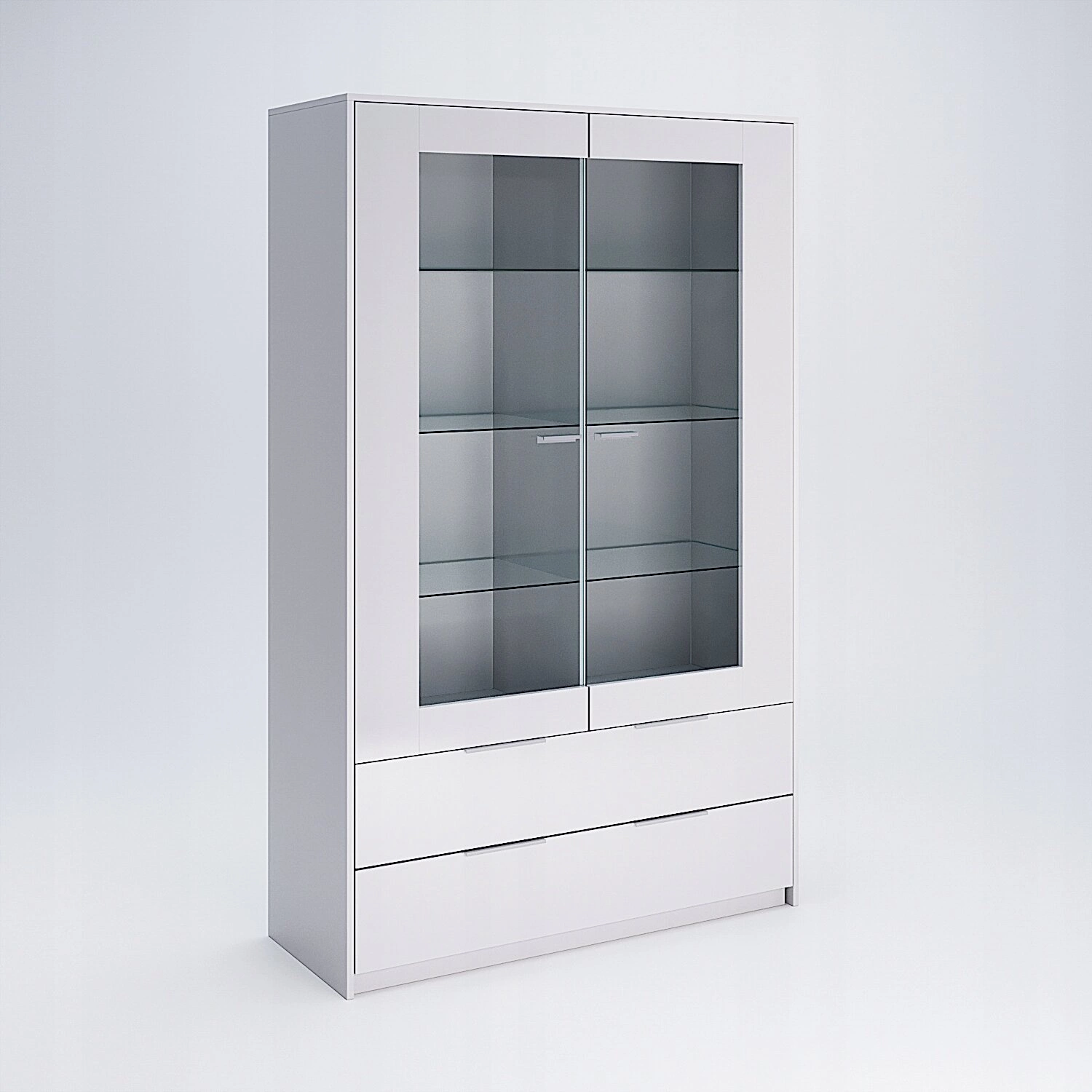 Bílá vitrína Merle od značky Intesi je moderní kus nábytku do obývacího pokoje o šířce 120 cm, který skvěle spojuje funkčnost s elegantním designem. Je vyrobena z odolných materiálů – bílé lesklé desky a průhledného skla – což jí dodává lehkost a umožňuje stylově vystavit její obsah. Prosklené čelní plochy a dvě praktické zásuvky činí tuto vitrínu ideální volbou pro uložení a prezentaci knih, dekorací nebo sbírky alkoholu v moderním interiéru.
