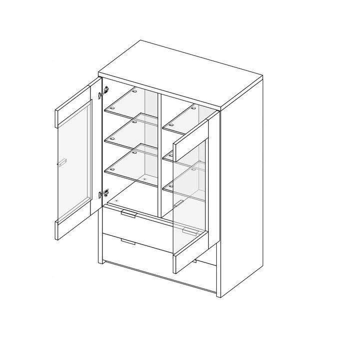 Skleněná vitrína Merle je skvělou volbou pro ty, kteří preferují minimalistický styl a uspořádaný domov. Univerzální lesklá bílá barva a hladké prosklené čelní plochy rozjasní i menší místnost a opticky ji zvětší. Šest prostorných polic nabízí dostatek místa pro knihy, sbírky nebo elegantní dekorace, zatímco dvě zásuvky usnadňují uložení drobností, které nechcete mít na očích.