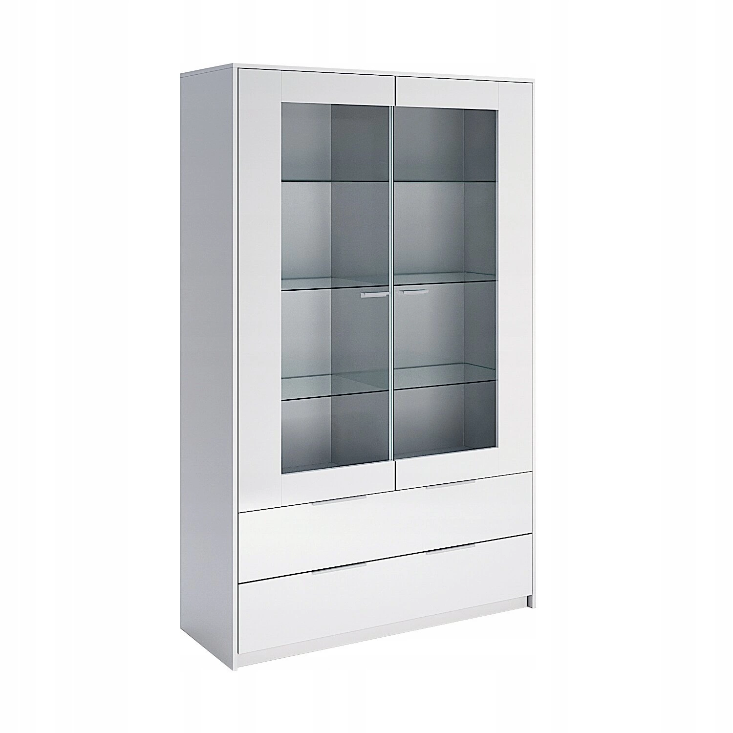 Výška 190 cm a hloubka 45 cm umožňují pohodlné uložení větších předmětů, zatímco šířka 120 cm zaručuje, že vitrína skvěle poslouží jako samostatný prvek nebo součást větší sestavy. Prosklené dveře nejen podtrhují moderní vzhled nábytku, ale také umožňují bezpečně vystavit cenné sbírky, které jsou chráněny před prachem. Bílé lesklé provedení usnadňuje údržbu – stačí otřít povrch a vitrína bude opět zářit čistotou.