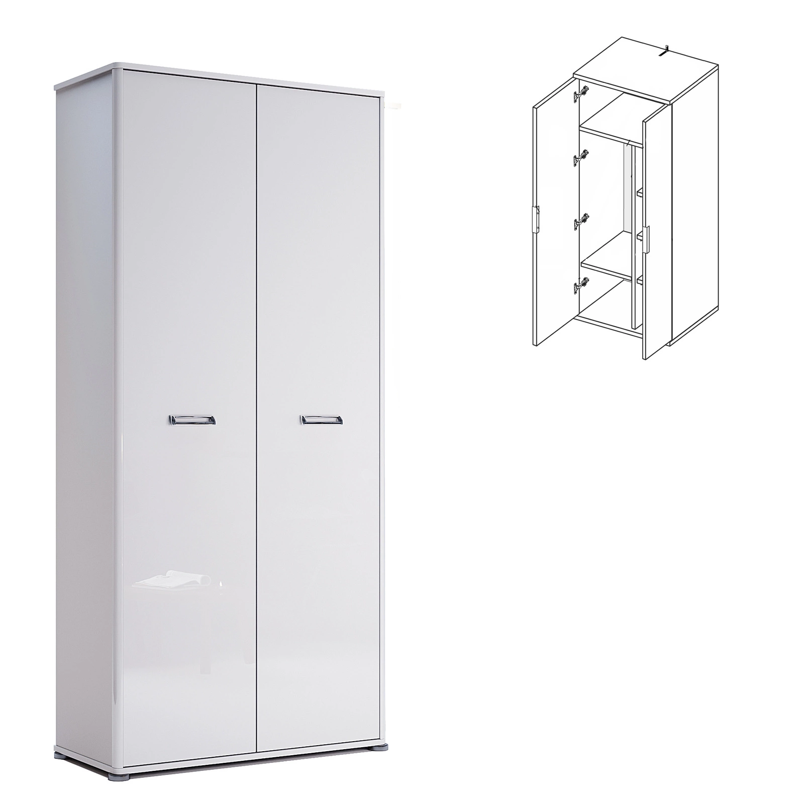 Šatní skříň Bella je bílá, dvoudveřová skříň s lesklým povrchem, vybavená šatní tyčí a praktickými policemi, o hloubce 40 cm. Její moderní vzhled podtrhují hladké přední plochy a jemný lesk, zatímco kompaktní rozměry (195×90×40 cm) z ní dělají ideální volbu do ložnice, šatny nebo studentského pokoje. Skříň ocení každý, kdo hledá funkční a zároveň stylové řešení v severském stylu.