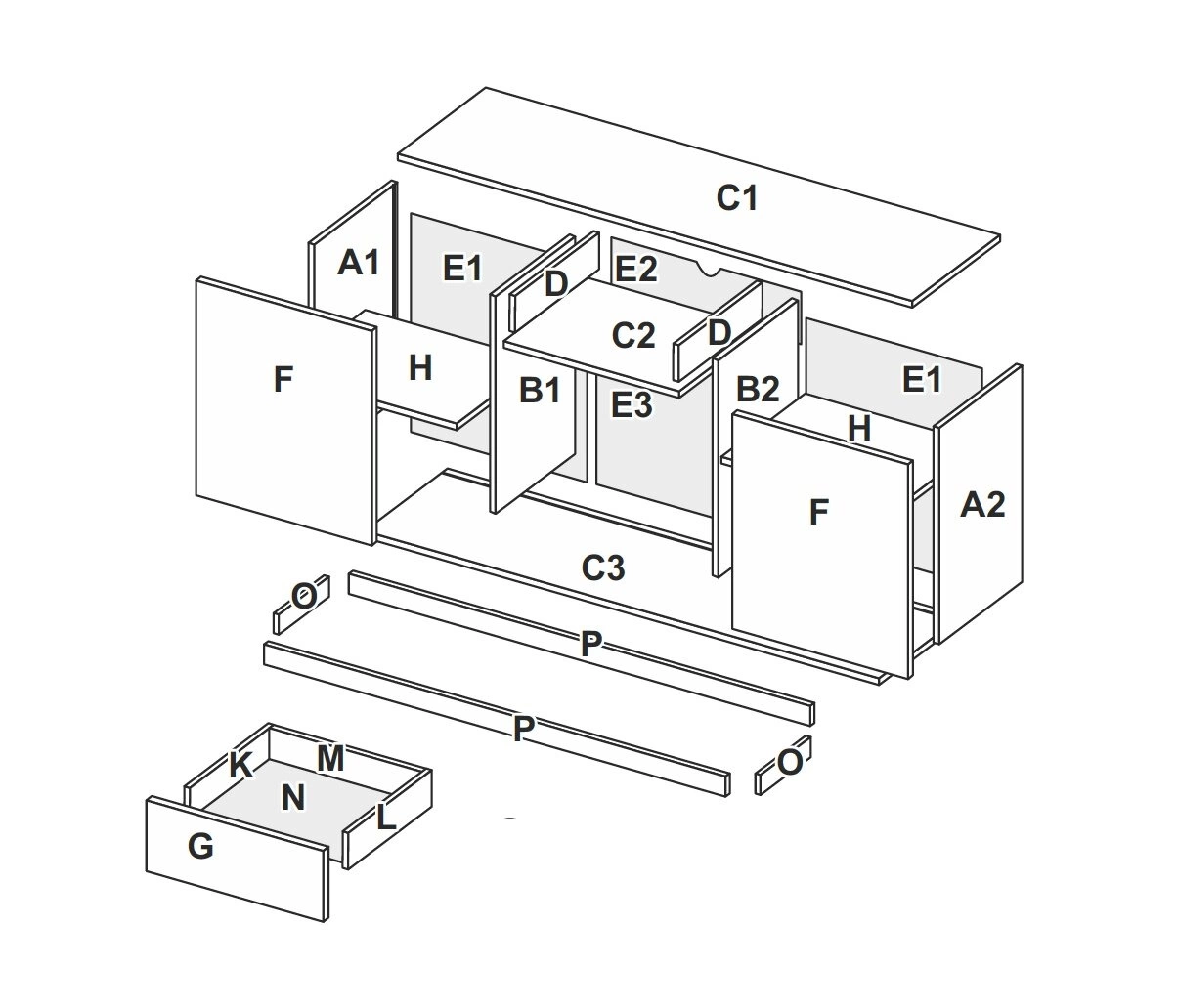 Tři velké zásuvky umožňují přehledné uložení dokumentů, textilu nebo každodenních drobností. Dvě uzavřené skříňky s pěti policemi pomáhají udržet pořádek a schovat větší předměty, které nemají být na očích. Obdélníková horní deska v dekoru přírodního dubu craft je ideálním místem pro dekorace, rodinné fotografie nebo pokojové rostliny.