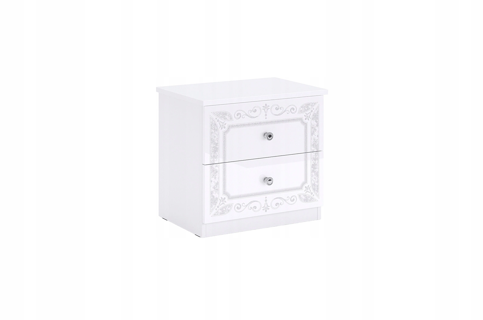 Výjimečný lesk a pečlivě navržené čelní plochy s decentními ozdobami podtrhují luxusní charakter tohoto nočního stolku do ložnice. Model Diamante vnáší do interiéru jedinečnou atmosféru elegance a harmonie, přitahuje pozornost jemným třpytem. Bílý noční stolek v lesku je ideální volbou pro ty, kteří oceňují glamour styl, ale zároveň očekávají praktická řešení pro každodenní použití.