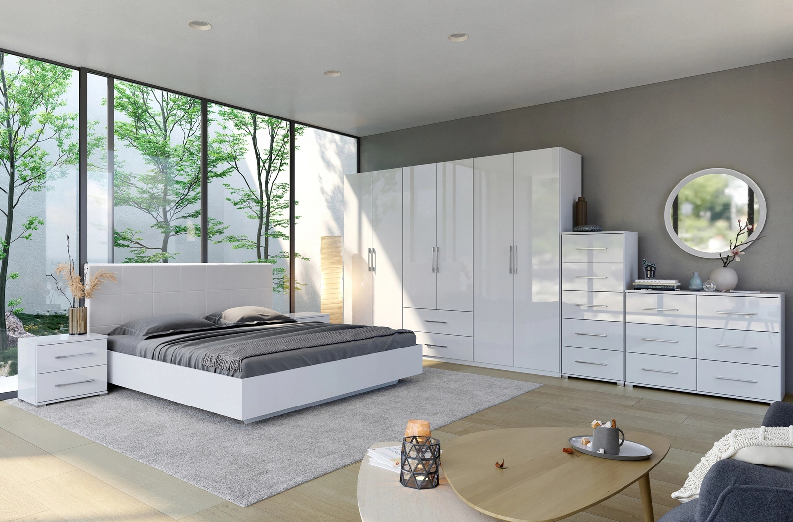 Komoda Flory bílá lesk 5 zásuvek 55 cm moderní do obýváku a ložnice