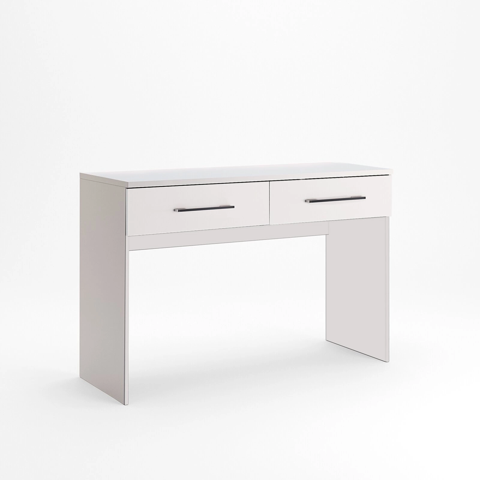 Toaletní stolek Flory od značky Intesi je moderní kosmetický stolek o šířce 120 cm, vyrobený z bílé lamino desky s vysokým leskem. Je vybaven dvěma prostornými zásuvkami a obdélníkovou deskou, což z něj činí stylové a praktické řešení do ložnice nebo studentského pokoje. Klasický, minimalistický design a elegantní povrchová úprava zajišťují, že tento nábytek perfektně zapadne do interiérů ve stylu glamour i skandinávském.