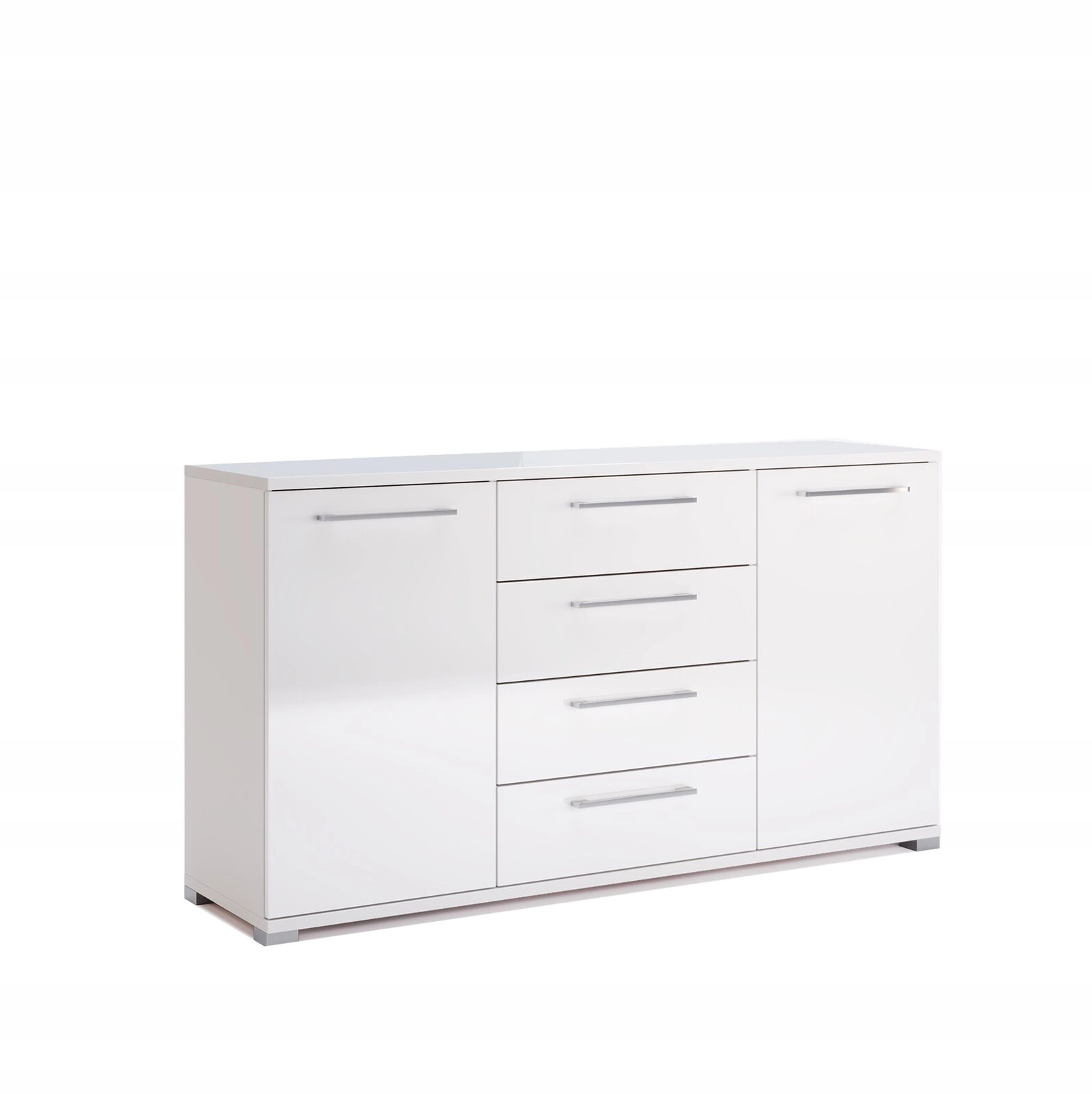 Komoda Flory bílý lesk 150 cm od značky Intesi je moderní nábytek, který propojuje eleganci bílého lesku s praktičností čtyř prostorných zásuvek a čtyř polic. Šířka 150 cm zajišťuje, že je ideální jako komoda do obývacího pokoje, ložnice nebo předsíně. Hladké čelní plochy, minimalistické nožky a vysoce lesklé provedení dodávají komodě lehkost a vnášejí do interiéru nadčasový styl.
