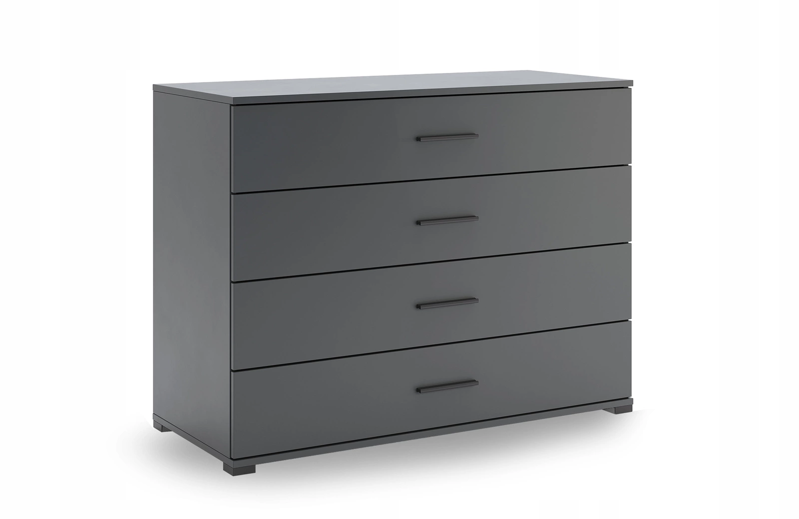 Komoda Della od značky Intesi je moderní kus nábytku s matným, grafitovým povrchem, vybavený čtyřmi prostornými zásuvkami a stabilními nožkami. Díky šířce 110 cm a výšce 84 cm se skvěle hodí do obývacího pokoje, ložnice i předsíně, kde poskytne praktický úložný prostor pro každodenní potřeby. Její univerzální šedá barva zdůrazňuje moderní, loftový styl interiéru, zatímco hladké čelní plochy a obdélníková horní deska vnesou do místnosti harmonii a pořádek.