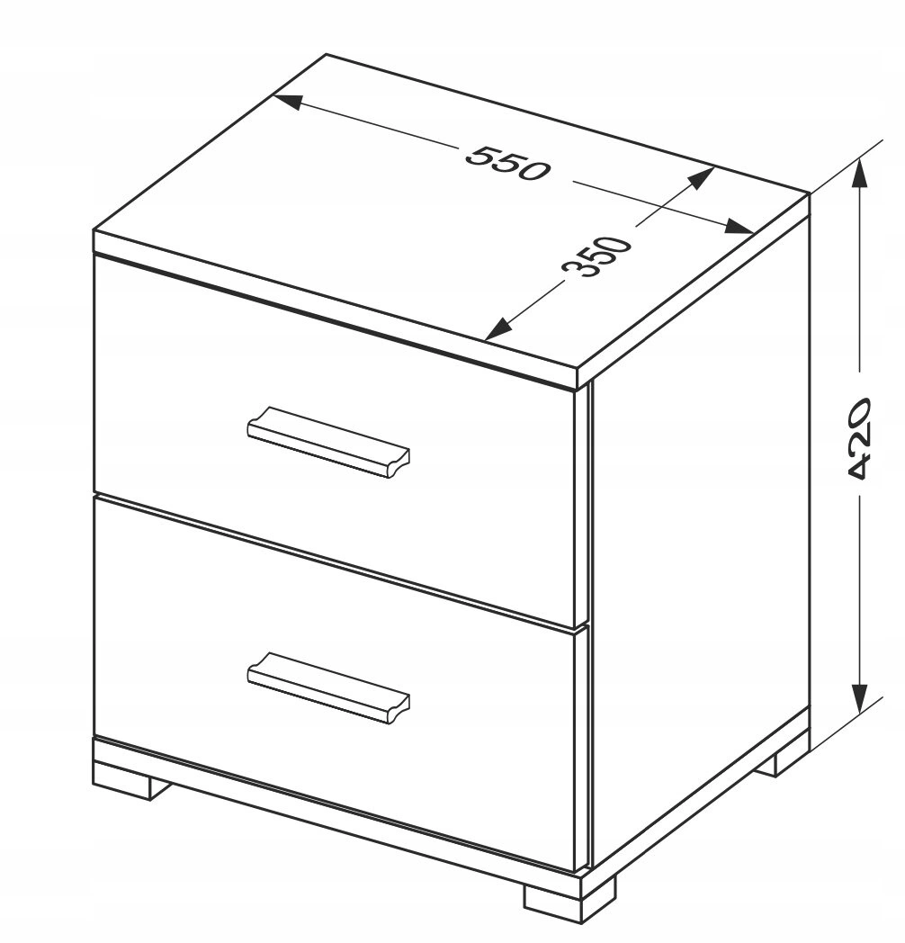 Tento noční stolek je vybaven dvěma prostornými zásuvkami, které vám pomohou udržet pořádek a mít všechny nezbytnosti – od knihy, přes brýle až po nabíječku či oblíbený krém – vždy na dosah. Šířka 55 cm umožňuje pohodlně umístit lampičku, budík či dekorace, zatímco hloubka 35 cm poskytuje snadný přístup ke všemu uloženému.