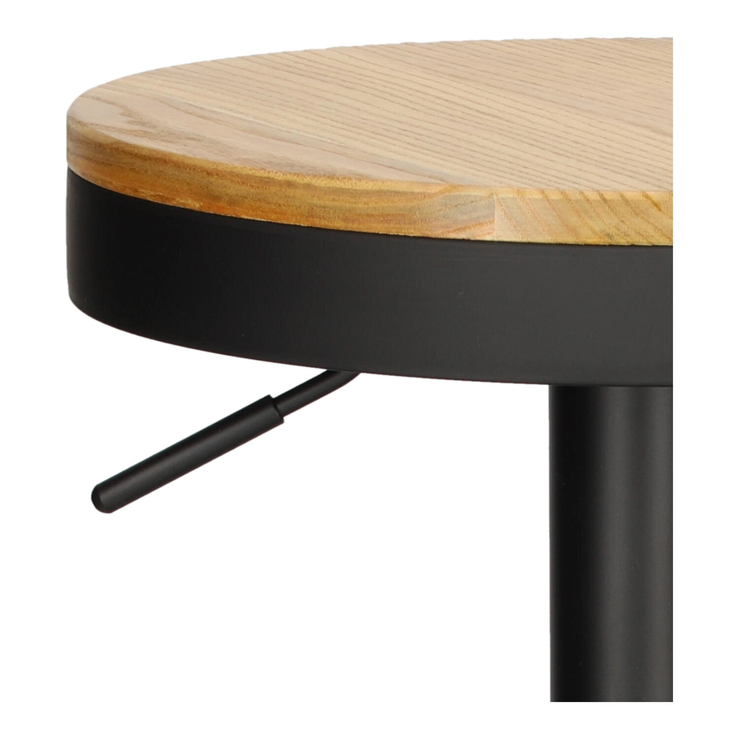Hoker Lofter od značky Intesi je klasickým příkladem loftového stylu v moderním pojetí. Tento černý kovový barový stoliček se sedákem z přírodního jilmového dřeva nabízí nastavitelnou výšku od 60 do 82 cm, takže je ideální jak k kuchyňskému ostrůvku, tak k barovému pultu. Kulatý dřevěný sedák zaručuje pohodlí a díky otočné funkci a snadné údržbě je každodenní používání opravdu praktické.