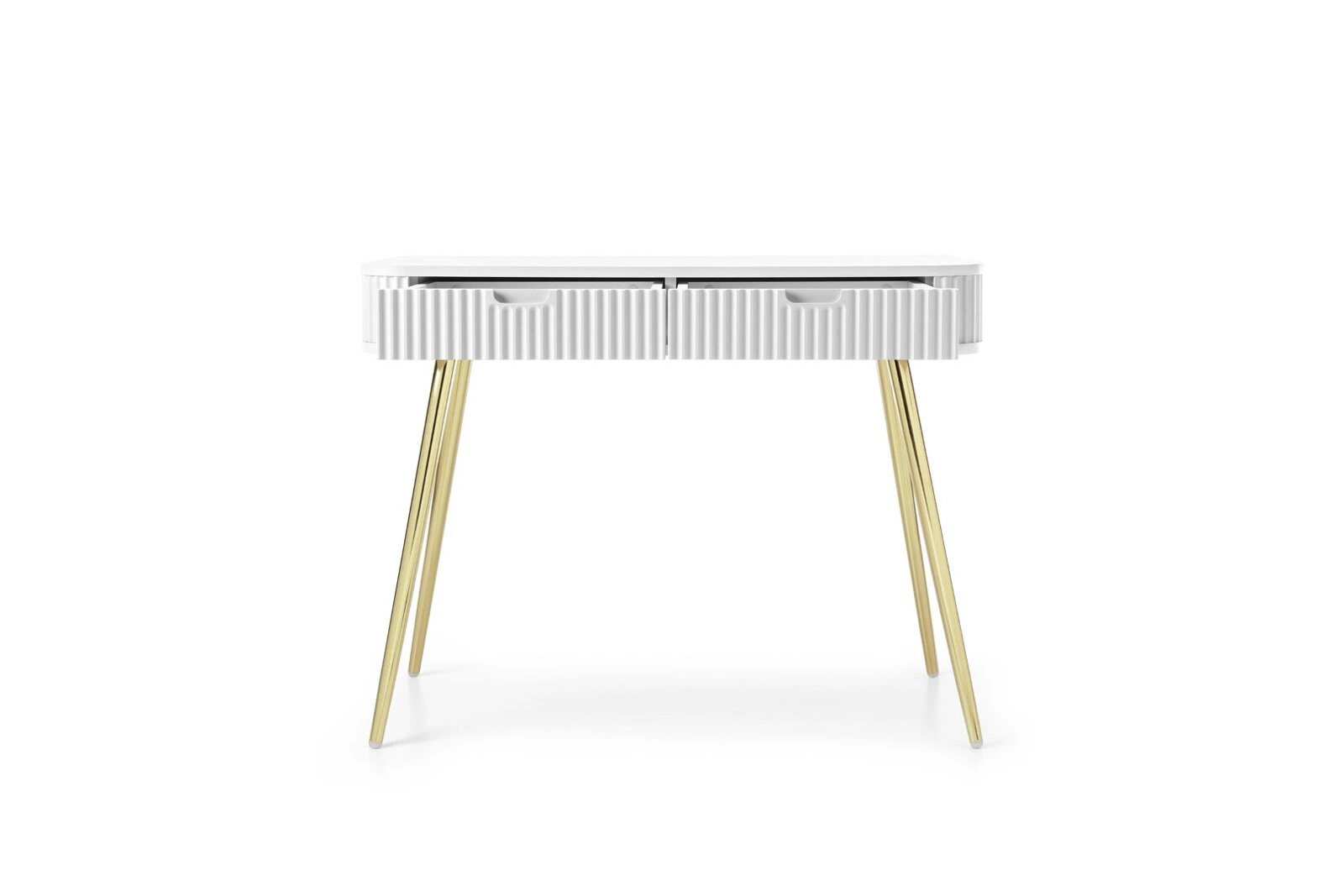 - Bílé barevné provedení a zlaté nohy dodávají toaletnímu stolku moderní a luxusní vzhled, který je ideální do módních předsíní