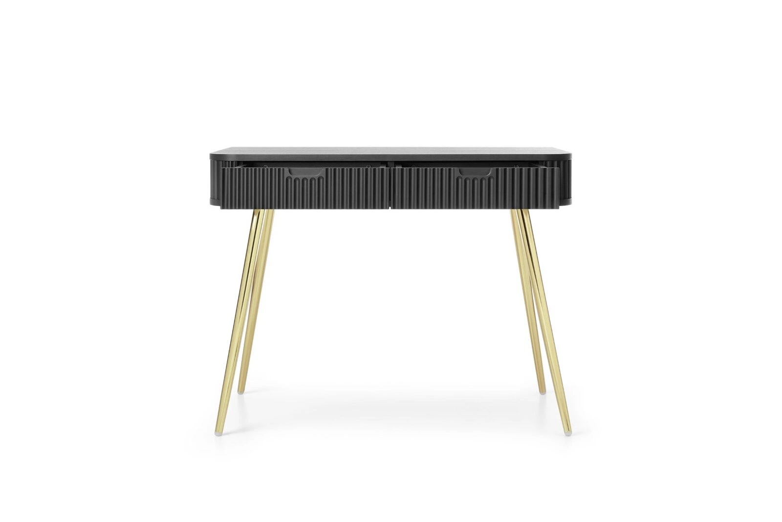 - Černé barevné provedení a zlaté nohy dodávají toaletnímu stolku moderní a luxusní vzhled, který je ideální do módních předsíní