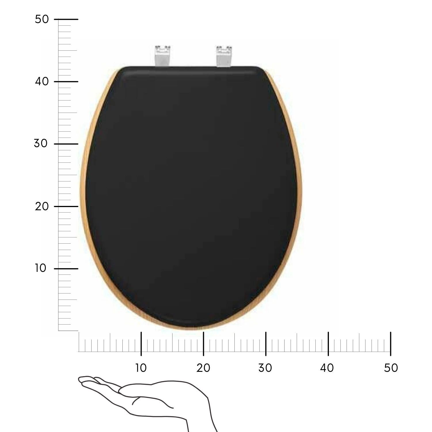 WC sedátko s pozvolným sklápěním Modern Color od značky 5five simply smart je dokonalou kombinací moderního designu a pevného zpracování. Model v hluboké černé barvě, vyrobený z odolné MDF desky o rozměrech 36 × 46,5 × 5,5 cm, je vybaven praktickým mechanismem pro pomalé sklápění a odolností vůči vlhkosti. Oválný tvar a univerzální rozměry zaručují, že sedátko perfektně zapadne do každé koupelny a poskytne pohodlí při každodenním používání.