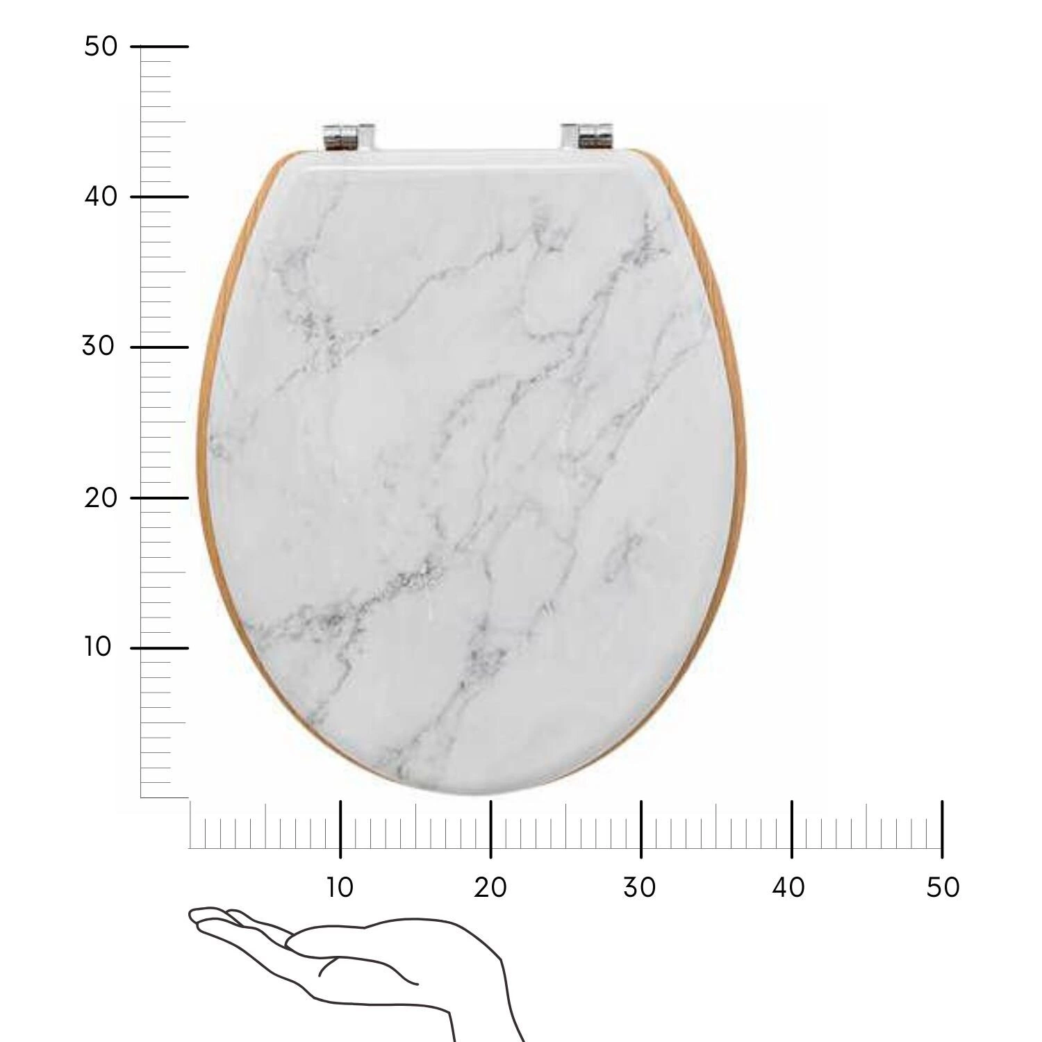 Bílé toaletní sedátko s mramorovým vzorem je klasické a funkční řešení, které dokonale zapadne do designu každé koupelny. Je vyrobeno z vysoce kvalitních materiálů a zaručuje odolnost a pohodlí. standardRozměry výrobku jsou36 cm na šířku, 46,5 cm do hloubky a 5,5 cm na výšku, takže je ideální volbou pro tyto toalety. Sedátko má oválný tvar, který poskytuje pohodlí a estetický vzhled.