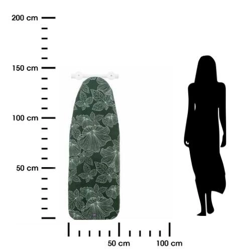 - sk.Potah měří 55 cm na šířku, 0,5 cm do hloubky a 140 cm na výšku a má tloušťku 5 mm, takže poskytuje optimální žehlicí plochu a mimořádné pohodlí.