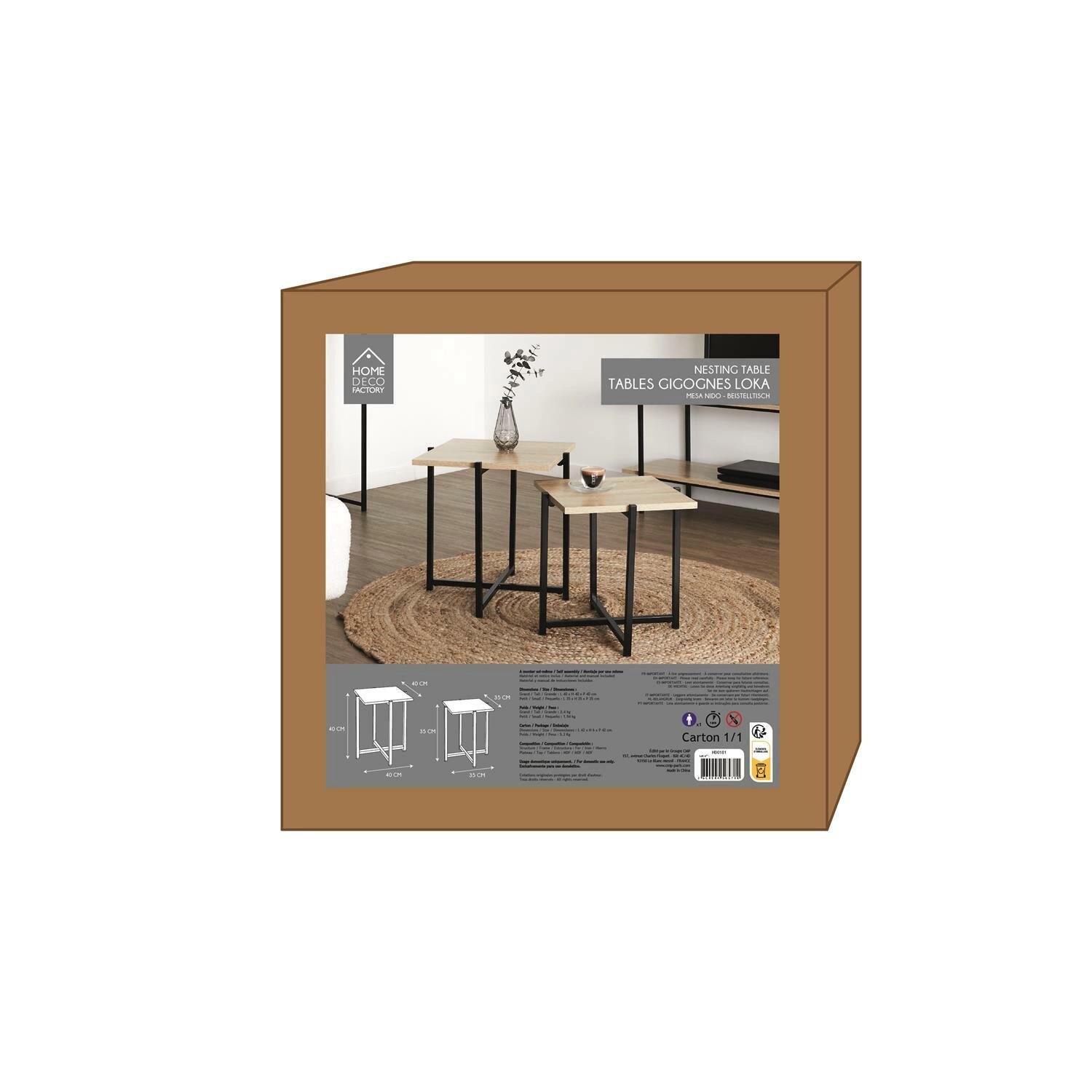 Sada dvou čtvercových konferenčních stolků Loka značky Intesi spojuje moderní design, funkčnost a univerzálnost. Obsahuje dva stolky (o rozměrech 40 × 40 × 40 cm a 35 × 35 × 35 cm), které perfektně poslouží jako konferenční stolek do obývacího pokoje, praktická odkládací lavice nebo designový přístavný stolek. Přírodní deska z MDF v polomatném provedení ladí s minimalistickou černou kovovou podnoží na lyžinách a vytváří moderní konferenční stolek v loftovém stylu.Konferenční stolky loftové Loka – funkčnost a design ladící s vaším interiérem