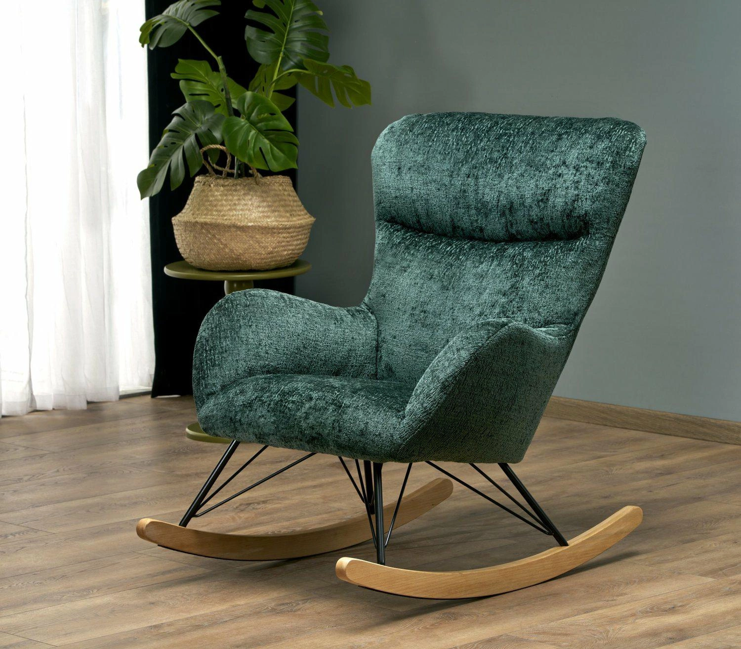 Houpací křeslo Opera od značky Intesi je skvělou volbou pro ty, kteří si cení relaxace v moderním stylu. Čalouněné příjemnou látkou v hluboké zelené barvě a postavené na pevných ližinách z masivního dřeva nabízí pohodlné houpání v obývacím pokoji, ložnici i studentském pokoji. Ergonomicky tvarované područky a sedák ve výšce 44 cm zajišťují, že každý okamžik odpočinku bude výjimečný.