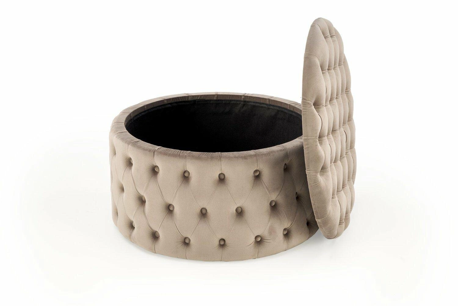 Taburet taburet Russ Velvet v béžové barvě je nejen funkčním kusem nábytku, ale také elegantním dekorativním prvkem, který se dokonale hodí do nejrůznějších interiérů. Toto kolovyrobené z měkké sametové látky potěší svým vzhledem a pohodlím při používání.Celé prošívané působí mimořádně stylově a luxusně a dodá šarm obývacímu pokoji, ložnici i šatně.