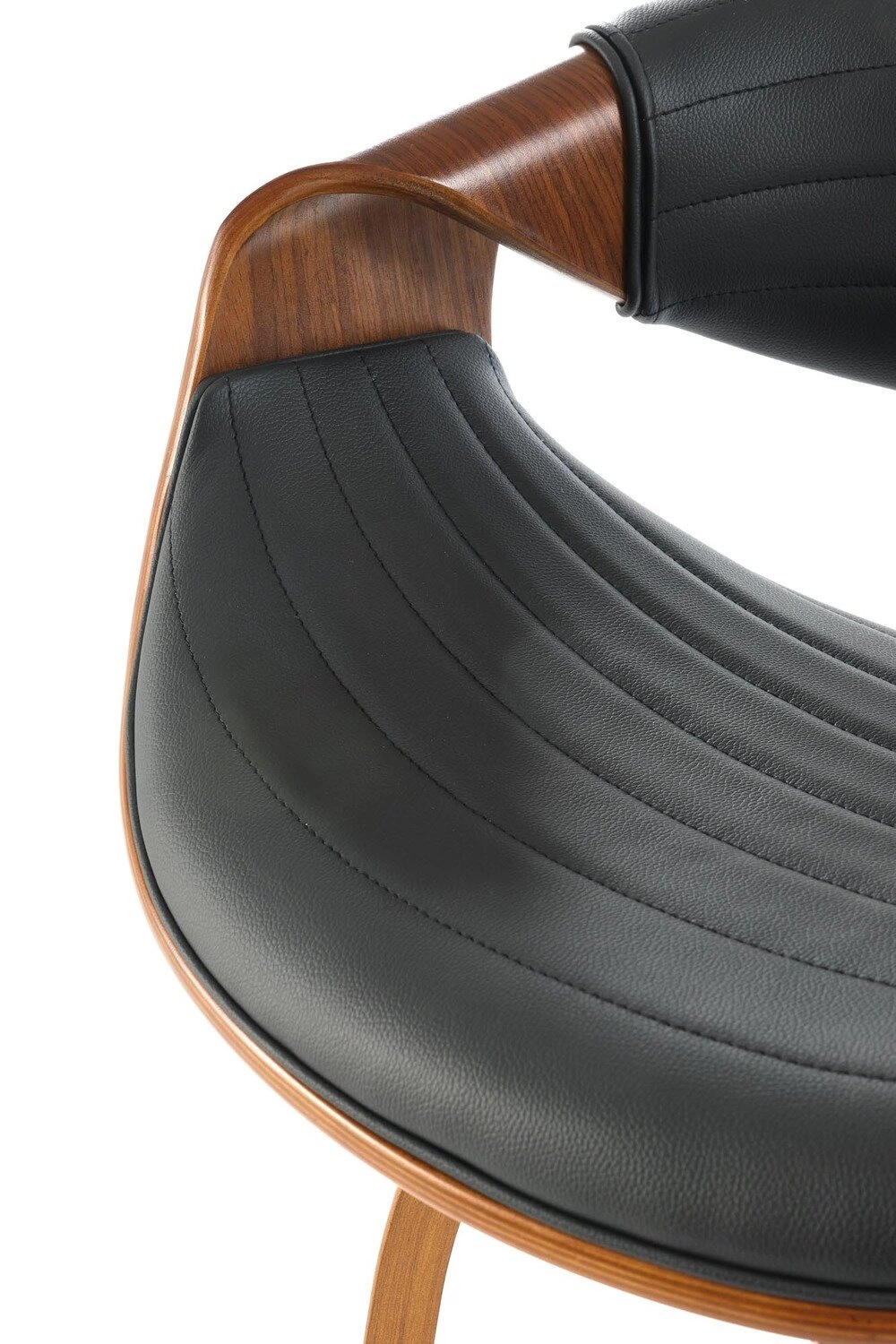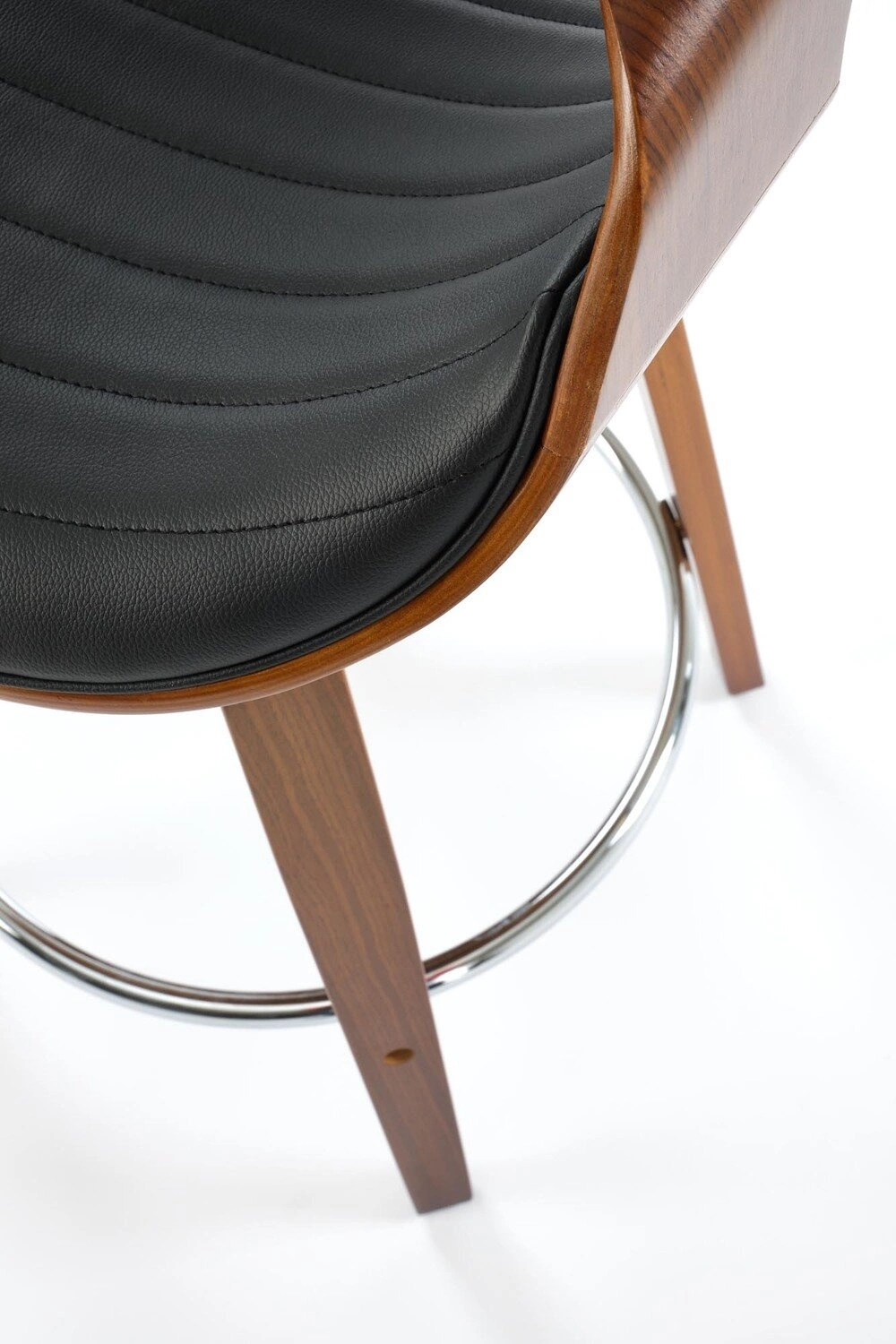 Hoker Analis značky Intesi je loftová barová židle s opěrkou zad a područkami, navržená pro moderní kuchyně a kuchyňské ostrůvky. Kombinuje černý, čalouněný sedák z ekokůže s podstavou v ořechovém dekoru z ohýbané překližky. Výška sedáku 63 cm zaručuje, že barová židle skvěle pasuje k běžným kuchyňským pracovním deskám. Pohodlná podnožka a ergonomické područky poskytují maximální komfort i při delším sezení.