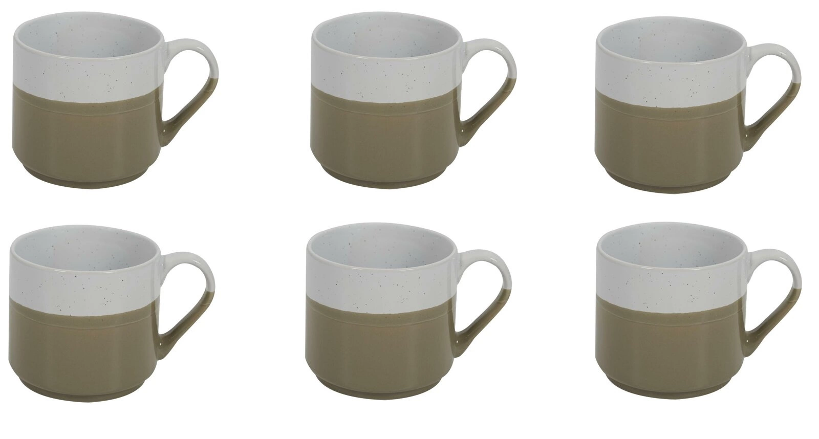 Sada 6 keramických hrnků Jumelle khaki od značky Intesi představuje harmonii stylu japandi a každodenní praktičnosti. Každý hrnek o objemu 330 ml je vyroben z kvalitní keramiky a zaujme jemnou, dvoubarevnou paletou v odstínech khaki a bílé. Promyšlený design zajišťuje, že sada je ideální jak na kávu, tak na čaj, a možnost mytí v myčce nádobí i použití v mikrovlnné troubě přináší pohodlí do každého dne.