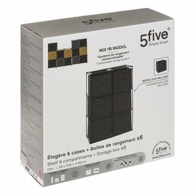 Loftový regál se 6 boxy Mix n`Modul od značky 5five simply smart je moderní, stojící nábytek o rozměrech 98×68×34 cm, vyrobený z pevného kovu a dřevotřískových desek, doplněný praktickými plastovými úložnými boxy. Skvěle se hodí pro ukládání hraček, doplňků nebo drobností v šatně, dětském pokoji či obývacím pokoji. Černé provedení a industriální design dokonale zapadnou do aktuálních loftových trendů a nabídnou nejen funkčnost, ale i stylový prvek pro každý interiér.