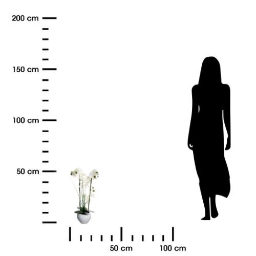 Díky svým kompaktním rozměrům (53 cm na výšku a 38 cm na šířku i hloubku) je umělá orchidej v bílém květináči perfektní jak do prostorného obývacího pokoje, tak do útulné ložnice nebo elegantní předsíně. Je to také stylový tip na dárek pro milovníky designu i pro ty, kdo nemají čas na každodenní péči o rostliny.