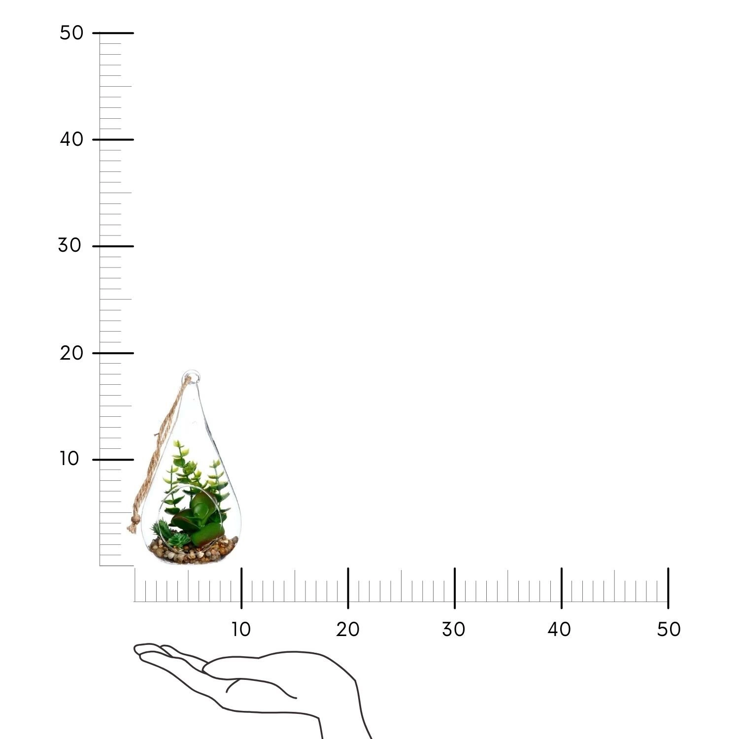 Umělá pokojová rostlina v květináči slza tlustice Atmosphera je stylová dekorace vyrobená z kvalitního skla, polyesteru a juty. Uzavřená v transparentní skleněné nádobě o výšce 18,5 cm, s charakteristickým tvarem slzy, věrně napodobuje přírodní tlustici. Zavěšená na jutovém provázku skvěle zapadne do moderních interiérů a podtrhne jejich originální ráz. Je to praktické a efektní řešení pro ty, kteří mají rádi zeleň v domácnosti, ale nechtějí se starat o pravidelnou péči o rostliny.