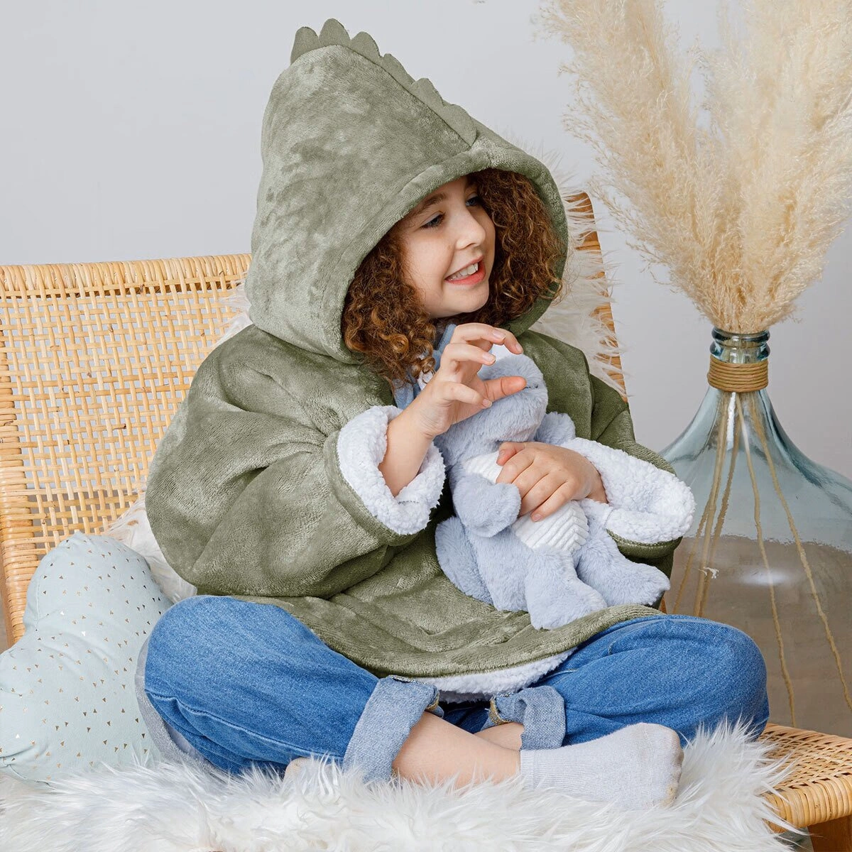S dětskou mikinou Atmosphera ve tvaru dinosaura budou mít vaši nejmenší vlastní ochranu před chladem. Tato mikina pro děti je vyrobena z měkkého flanelu ve stejné barvě jako design a zdvojená fleecovým úpletem pro větší pohodlí. Tato deka, která je vybavena velkou klokaní kapsou a dlouhými rukávy s manžetami, je k dispozici v jedné velikosti. Jedna velikost je vhodná pro všechny děti ve věku od 3 do 10 let, s volnějším nebo přiléhavějším střihem v závislosti na věku dítěte. š 60 x h 1 x v 95 cm Hmotnost: 0,48 kg Materiál: polyester