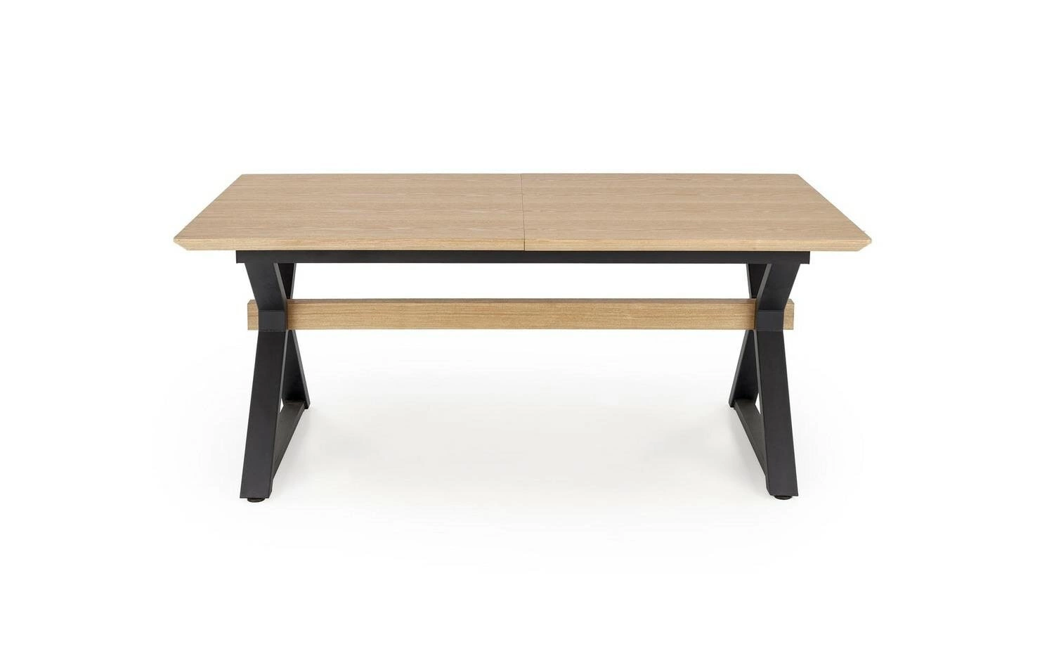 Rozkládací stůl Lorete od značky Intesi je ideálním řešením pro moderní jídelny a obývací pokoje. Obdélníková deska o šířce 100 cm je vyrobena z odolného materiálu s přírodním dřevěným povrchem, zatímco stabilní černé ocelové nohy dodávají celku minimalistický a moderní vzhled. Největší předností je možnost rozložení stolu od 180 až do působivých 300 cm délky, což z něj činí mimořádně praktický kus nábytku pro rodinné obědy, sváteční hostiny nebo setkání s přáteli.