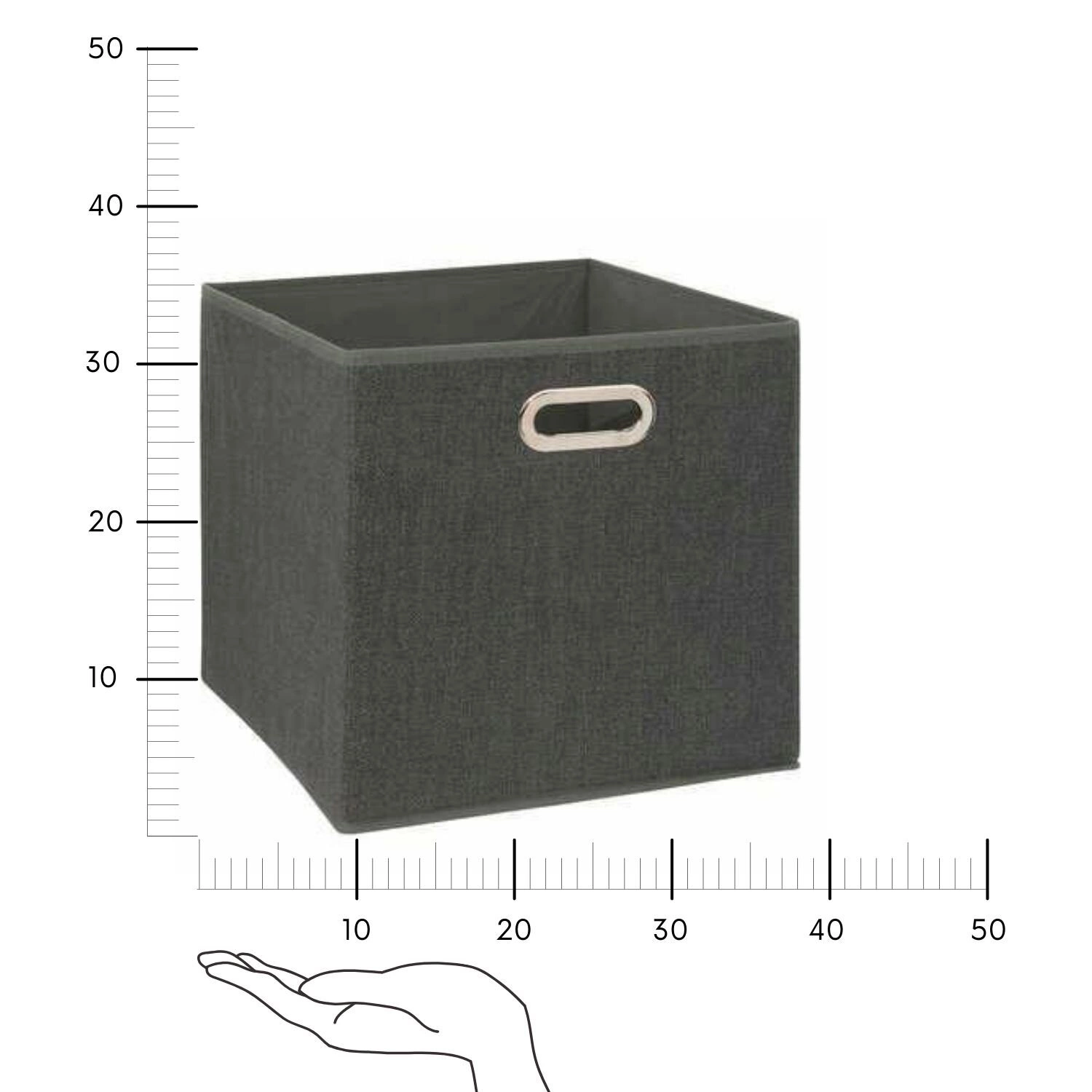 Látková krabice do regálu 31x31 cm od značky 5five simply smart je praktickým a moderním řešením pro ukládání v každé domácnosti. Vyrobena z příjemné textilie a zpevněná kartonovou konstrukcí, skvěle poslouží jako box do regálu, organizér na hračky, doplňky nebo oblečení. Díky univerzální šedé barvě a kovovému úchytu ji snadno sladíte s designem šatny, ložnice nebo studentského pokoje.