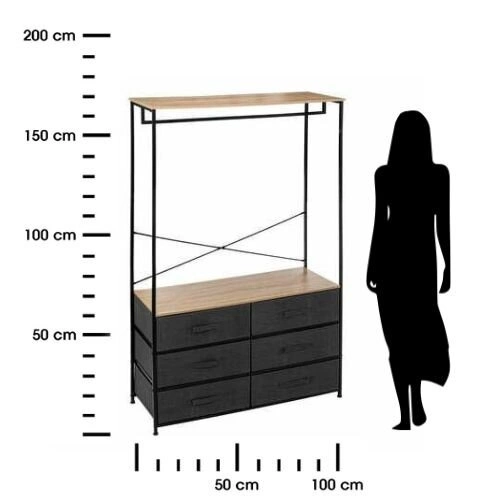 Stojanový věšák se skříňkou a zásuvkami Tissa od značky 5five simply smart je komplexní řešení pro moderní předsíň, které spojuje praktický stojan na oblečení s prostornou skříňkou vybavenou šesti zásuvkami a dodatečnou policí. Celý věšák je provedený v módní černé barvě s prvky přírodního dekoru, což perfektně zapadá do minimalistického a současného stylu bydlení. Robustní ocelová konstrukce o výšce 167 cm a šířce 100 cm zajišťuje stabilitu, zatímco promyšlené detaily poskytují maximální komfort při každodenním používání.