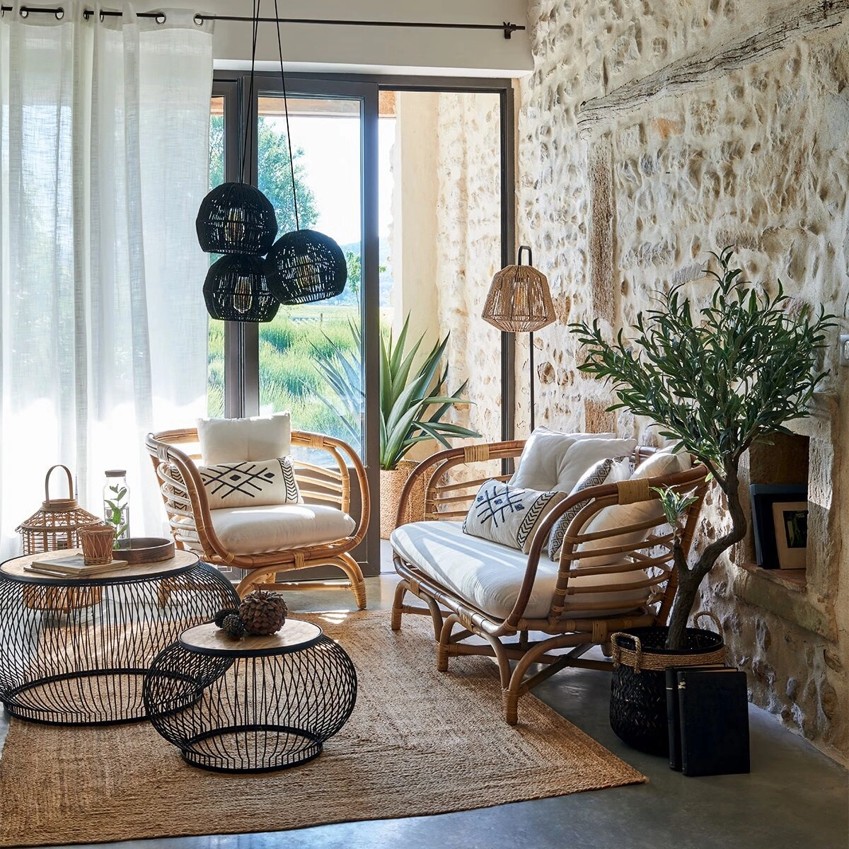 Szafka nocna boho biała z szufladami DKwadrat naturalna juta Atmosphera 60 cm