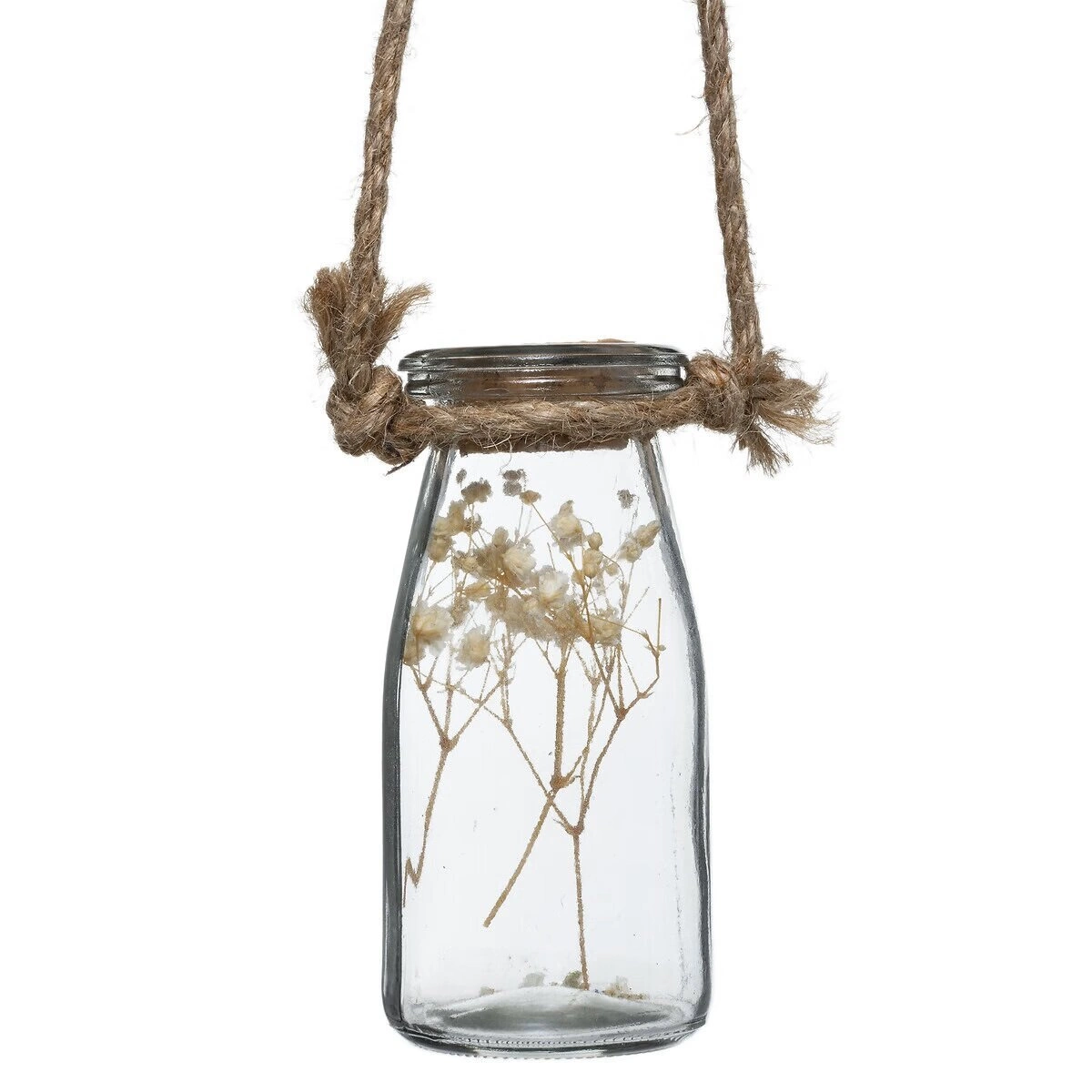 Atmosphera závěsná nástěnná dekorace se sušenými květinami láhve sklo dřevo do obývacího pokoje 53 cm