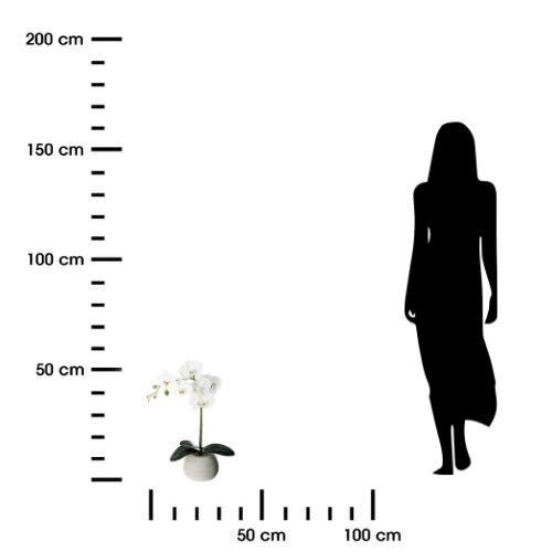 Umělá orchidej Real Touch s betonovým květináčem je dokonalým řešením pro ty, kteří chtějí do svého interiéru vnést nádech zeleně a elegance bez nutnosti údržby. Orchidej vyrobená z vysoce kvalitního polyethylenu má mimořádně realistický vzhled. Její jemné bílé okvětní lístky dokonale vystihují přirozený půvab této oblíbené květiny a vnesou romantickou náladu do každé místnosti. Betonový květináč dodává celkovému designu moderní a stylový vzhled, který dokonale ladí s různými interiérovými aranžmá.