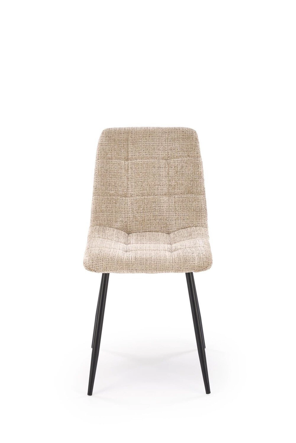 Sedadlo o šířce 45 cm a hloubce 53 cm je tvarováno tak, aby poskytovalo maximální pohodlí i při dlouhých posezeních u stolu. Potah z příjemné tkaniny je odolný vůči každodennímu používání a snadno se čistí – stačí otřít vlhkou utěrkou, aby si zachoval svěží vzhled. Opěradlo o výšce 87 cm jemně podpírá záda, což umožňuje relaxovat po náročném dni. Absence područek umožňuje snadné zasunutí židle pod stůl a úsporu místa v místnosti.