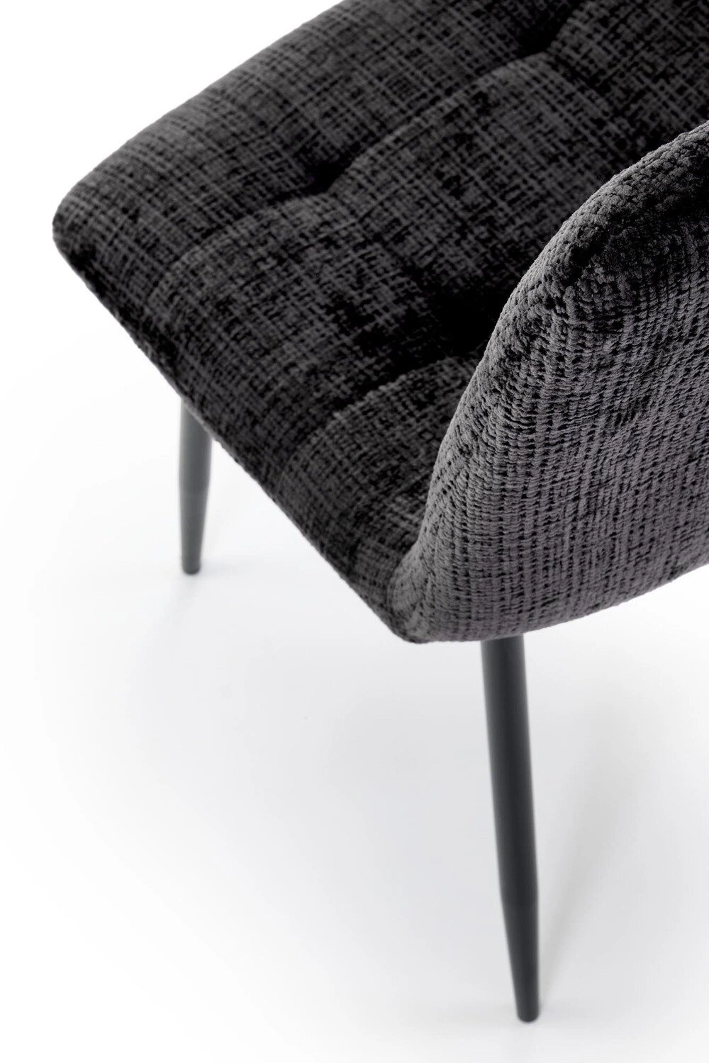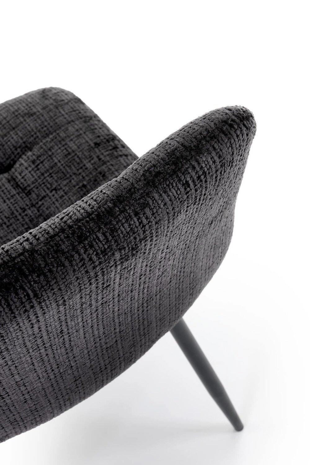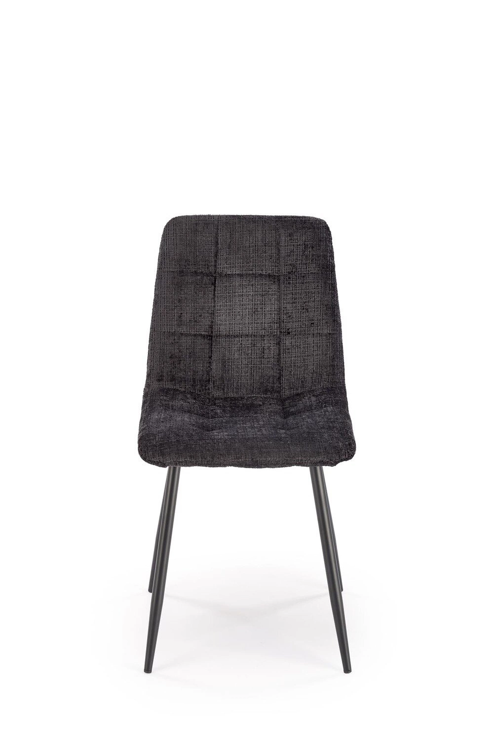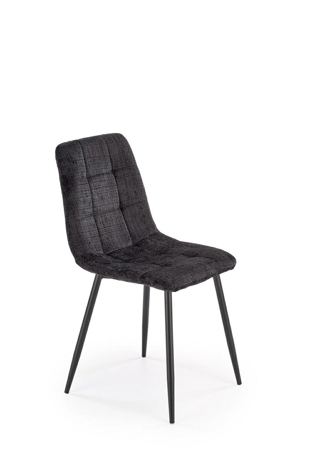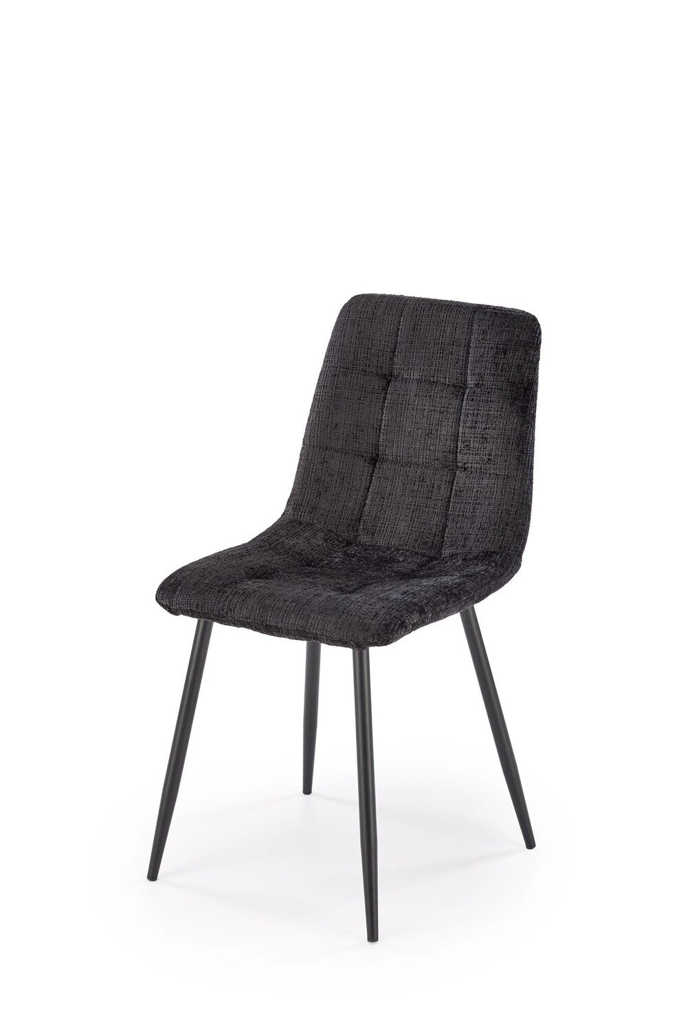 Čalouněná židle Pilew od značky Intesi je esencí moderního stylu spojeného s vysokým komfortem. Černá, prošívaná látka sedáku a pevné kovové nohy s polomatnou povrchovou úpravou dodávají tomuto nábytku elegantní a univerzální vzhled. Díky výšce 87 cm a sedáku ve výšce 48 cm je tento model ideální volbou jako židle do jídelny, obývacího pokoje nebo kuchyně – zaručuje pohodlí i při delším posezení u stolu.