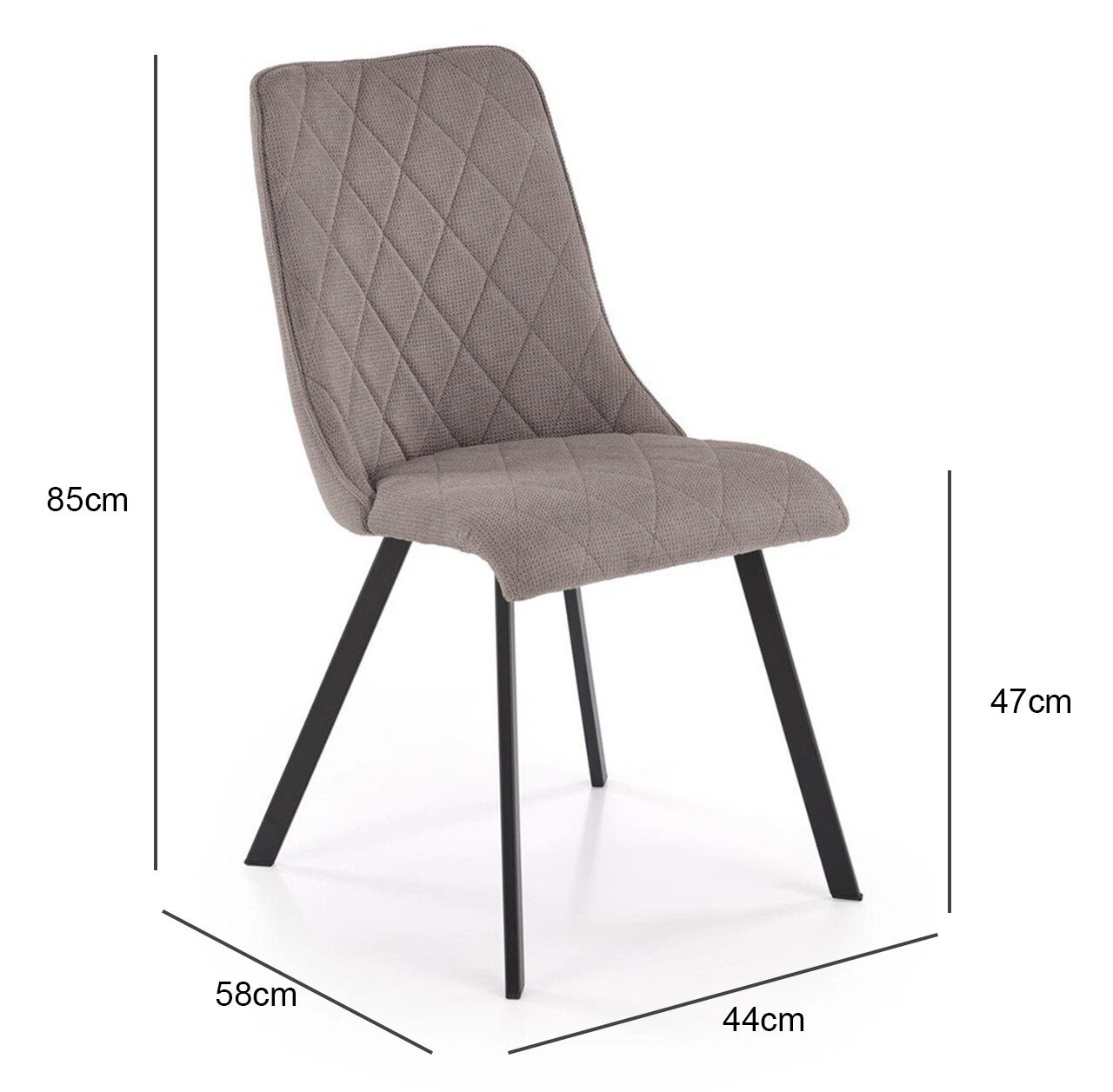 Židle Fenri byla navržena s důrazem na maximální komfort při běžném stolování, dlouhých rozhovorech i práci u stolu. Čalouněná příjemnou šedou látkou nabízí pohodlné sedadlo o šířce 45 cm a výšce 47 cm, které zaručuje komfort i při delším sezení. Ergonomicky tvarované, prošívané opěradlo (výška 36 cm) poskytuje oporu páteři a umožňuje relaxaci, zatímco decentní lesk černých, práškově lakovaných nohou podtrhuje moderní charakter tohoto nábytku.