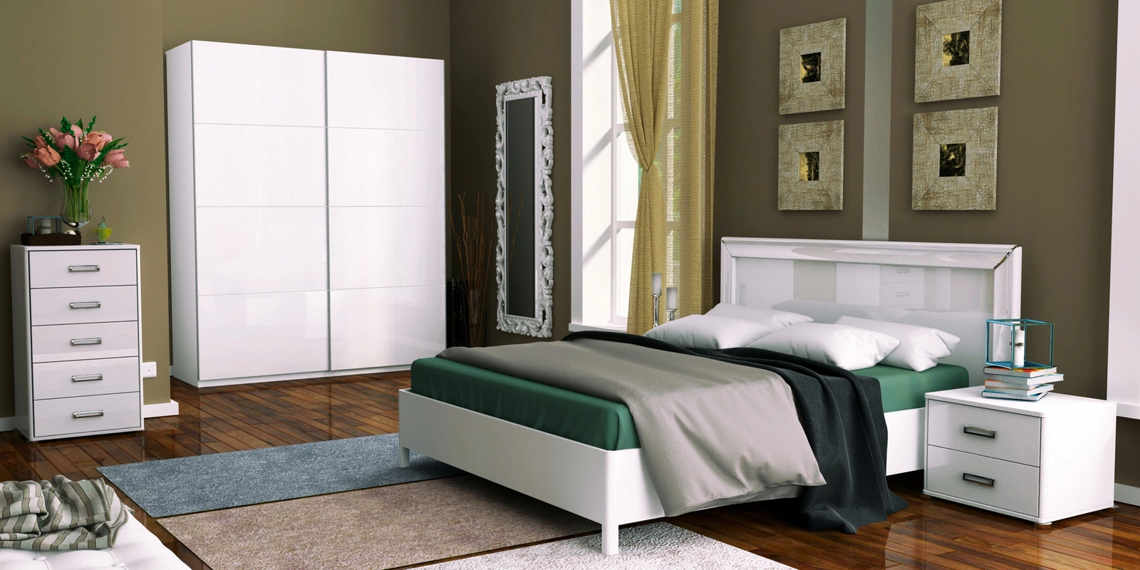 - Všechny prvky sestavy jsou navrženy v jednotném stylu, což zajišťuje jednotný a harmonický vzhled celé ložnice