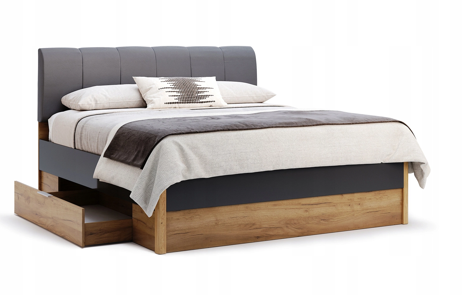 Praktické zásuvky jsou ideálním řešením pro ukládání ložního prádla, dek nebo sezónního oblečení – díky nim snadno udržíte pořádek a vše potřebné budete mít vždy po ruce. Konstrukce z nábytkových desek a čalounické pěny zajišťuje dlouhou životnost a pohodlí při používání, zatímco polomatná úprava umožňuje snadnou údržbu postele v čistotě.