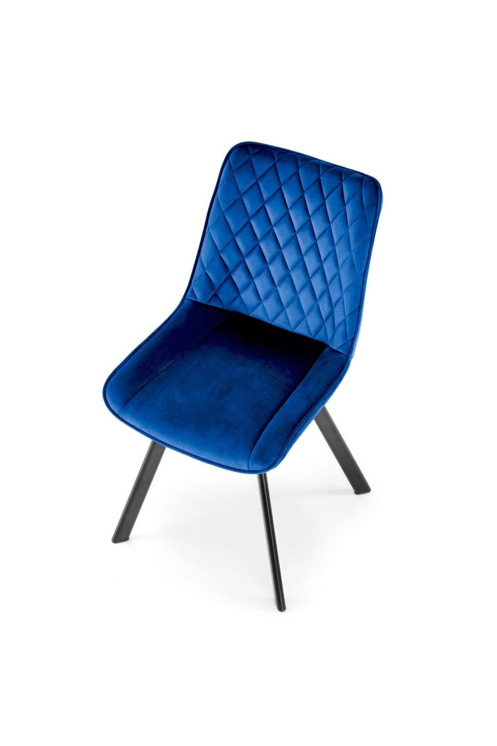 Modrý velur, ze kterého je sedák vyroben, zaručuje nejen příjemný pocit na dotek, ale i jedinečný vizuální efekt. Sametový povrch krásně odráží světlo, čímž dodává interiéru hloubku a sofistikovanost. Jednoduché, ale elegantní linie a kontrastní černé nohy dělají z této čalouněné židle perfektní volbu pro moderní i glamour interiéry – jak do jídelny, tak do reprezentativního obývacího pokoje.