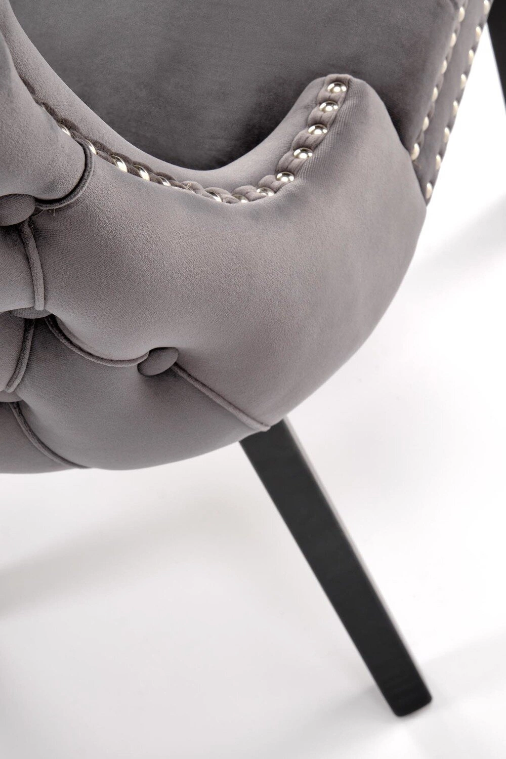 Jemná šedá sametového potahu krásně ladí s černými, dřevěnými nohami a dodává interiéru lehkost i eleganci. Univerzální design zajistí, že čalouněné křeslo skvěle vynikne jak v minimalistických, tak v klasičtějších aranžmá. Prvky inspirované skandinávským stylem podtrhují přirozenost a harmonii prostoru.