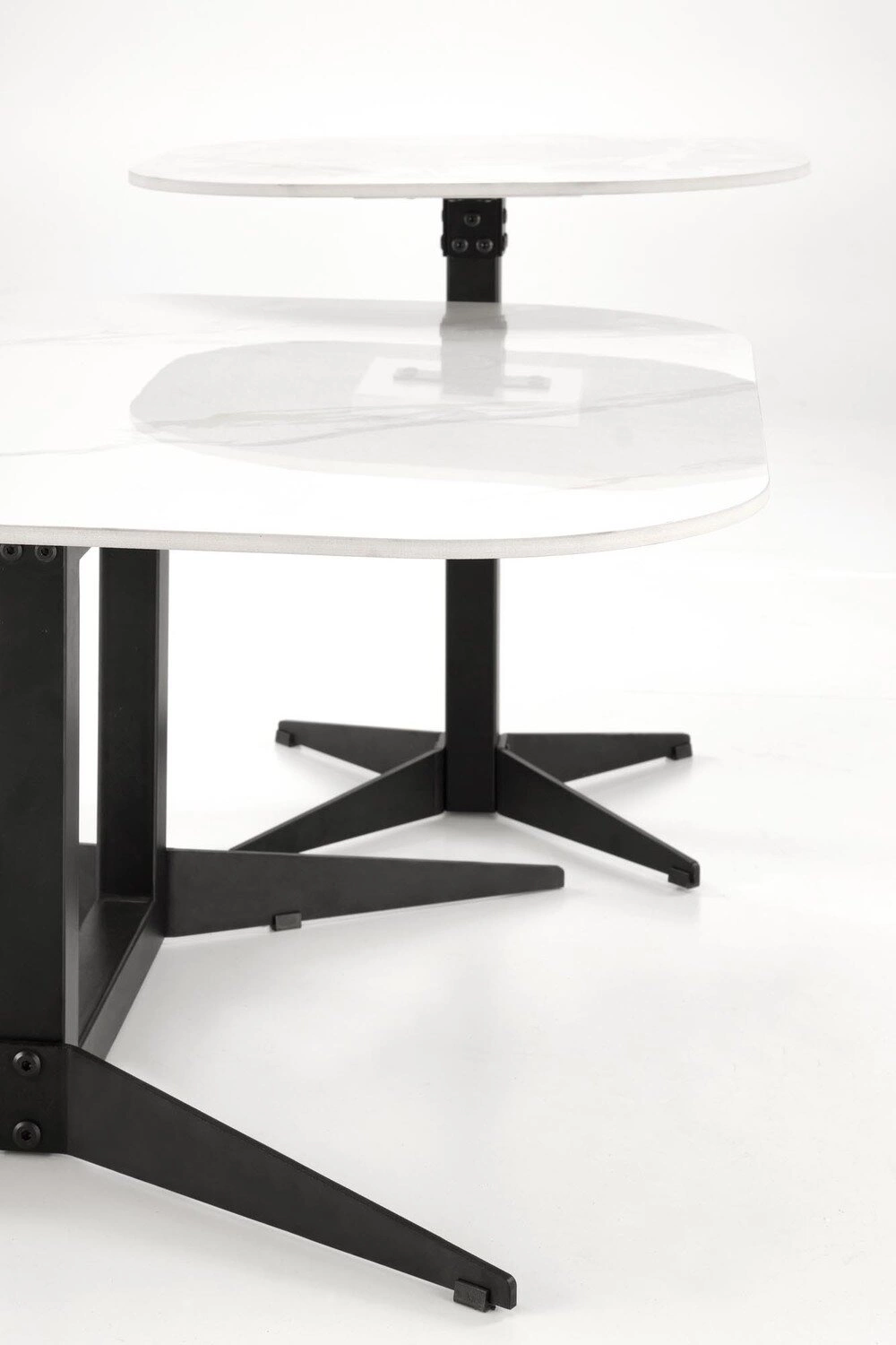 Kávový stolek Dalita od značky Intesi je spojením moderního designu a praktičnosti, které skvěle zapadne jak do obývacího pokoje, tak do jídelny. Čtvercová deska o rozměrech 50x50 cm je vyrobena z odolného keramického kompozitu imitujícího bílý mramor, takže stolek zaujme elegantním vzhledem a zároveň se velmi snadno udržuje v čistotě. Stabilní podnož z černé, práškově lakované oceli podtrhuje industriální charakter nábytku a zaručuje dlouhou životnost.