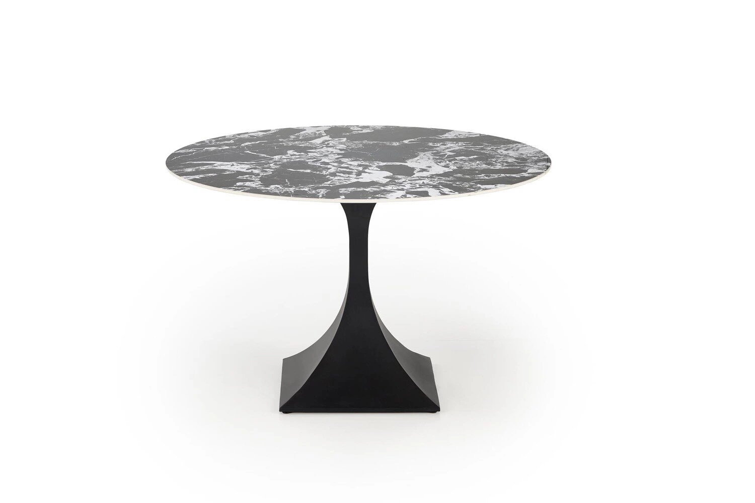 Kulatý jídelní stůl Gives od značky Intesi spojuje výrazný design s maximální funkčností. Kulatá deska o průměru 120 cm je vyrobena z moderního slinutého materiálu s povrchem imitujícím černý mramor, což okamžitě upoutá pozornost a dodá interiéru exkluzivní charakter. Jedna robustní ocelová noha v hluboké černi zajišťuje stabilitu a podtrhuje moderní, loftový styl nábytku, díky čemuž je tento stůl skvělou volbou do jídelny nebo obývacího pokoje.