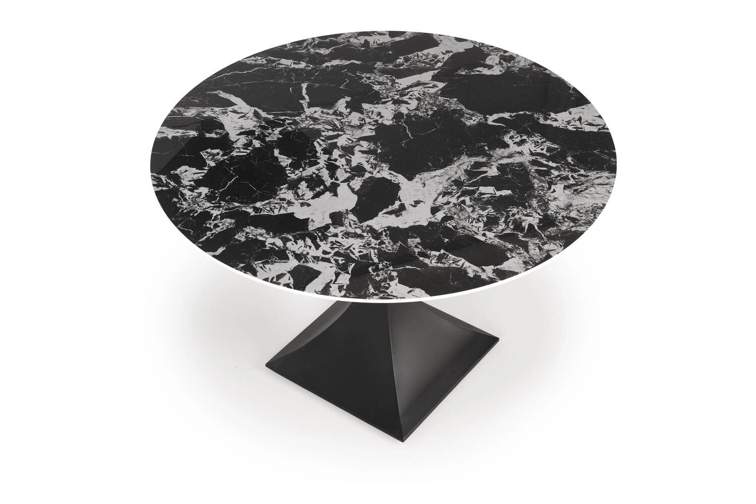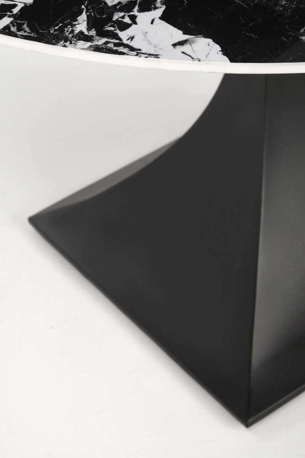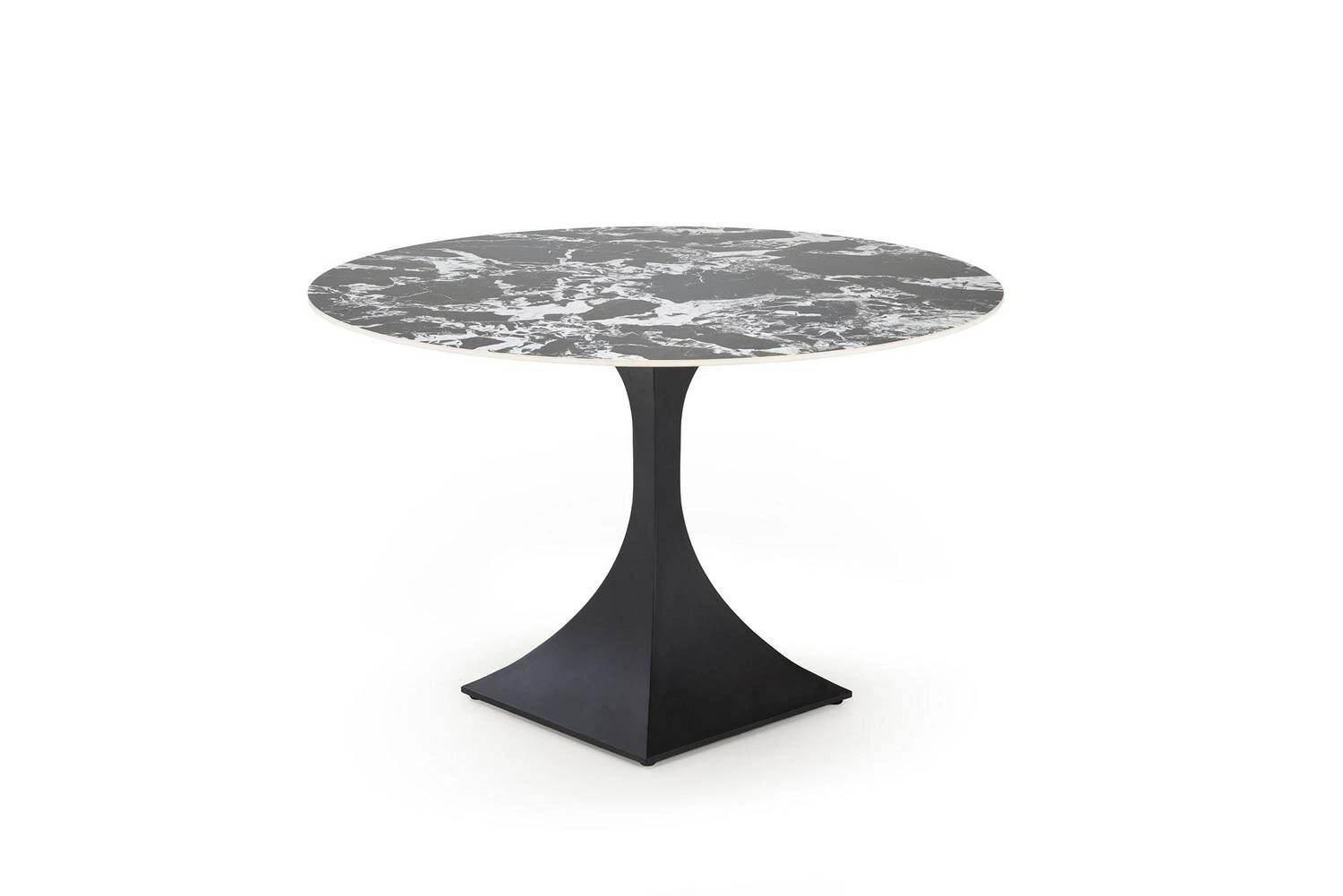 Kulatý stůl Gives se perfektně hodí do industriálních a moderních interiérů – stává se nejen praktickým místem pro setkávání, ale i výraznou ozdobou prostoru. Deska ze slinutého materiálu v odstínu černého mramoru působí velmi elegantně a zároveň se snadno udržuje v čistotě – ideální pro každodenní použití. Jedna centrální noha zajišťuje pohodlný přístup ke stolu ze všech stran a umožňuje volné rozmístění židlí, což oceníte při rodinných obědech i setkáních s přáteli.
