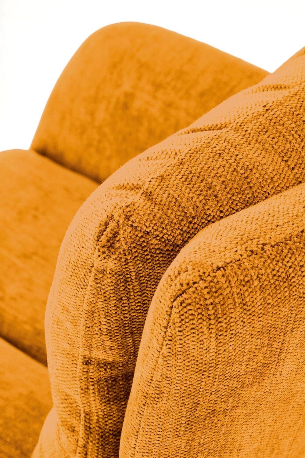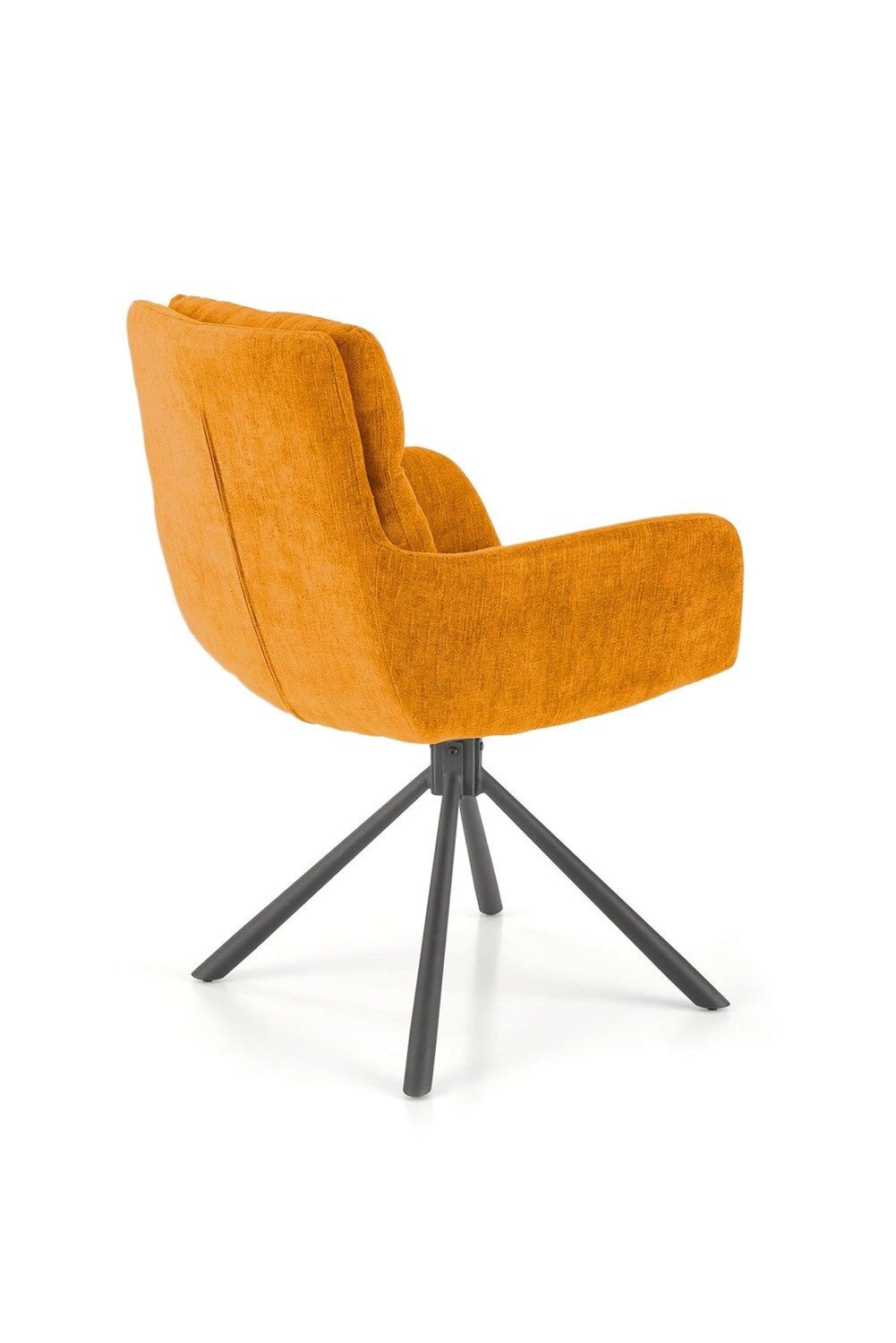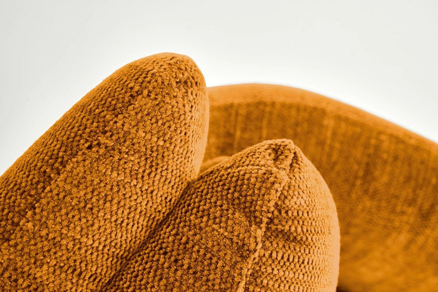 Čalouněná otočná židle Ophelia od značky Intesi je kombinací moderní elegance a maximálního pohodlí, navržená s ohledem na jídelnu i obývací pokoj. Tento model zaujme hořčicovým čalouněním, ergonomickými područkami a otočnou funkcí, která umožňuje volný pohyb. Stabilní černá základna z práškově lakované oceli zaručuje dlouhou životnost a stylový, minimalistický vzhled.