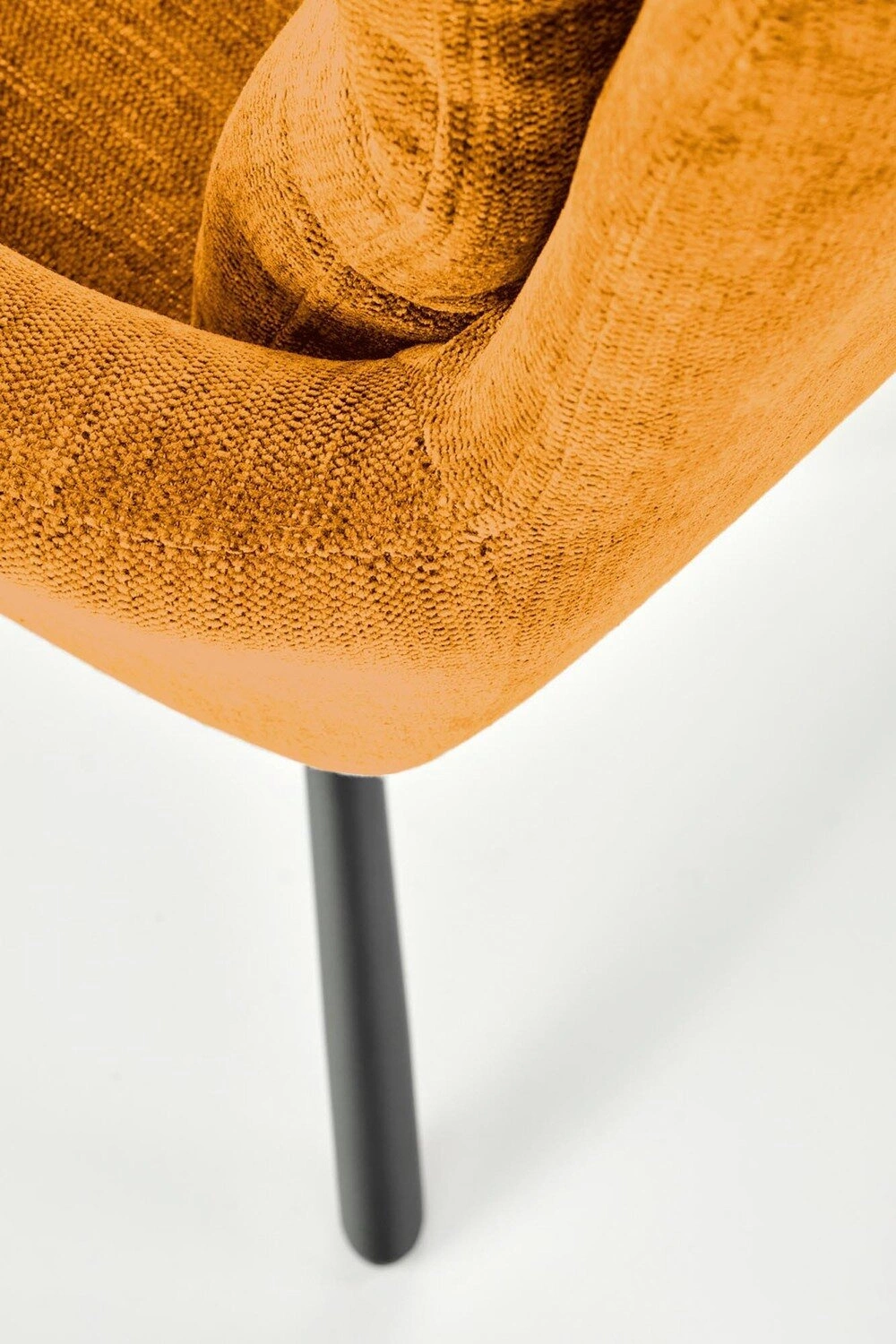 Ophelia je židle do jídelny a obývacího pokoje, která na první pohled upoutá hlubokou hořčicovou barvou čalounění. Tento výrazný odstín oživí každý interiér, dodá mu osobitý charakter a příjemné teplo. Jednoduchý, ale sofistikovaný tvar spolu s moderními detaily dělají z této židle ideální doplněk pro minimalistické nebo skandinávské interiéry. Perfektně se hodí jak do moderních jídelen, tak i elegantních obývacích pokojů nebo k domácímu kosmetickému stolku.
