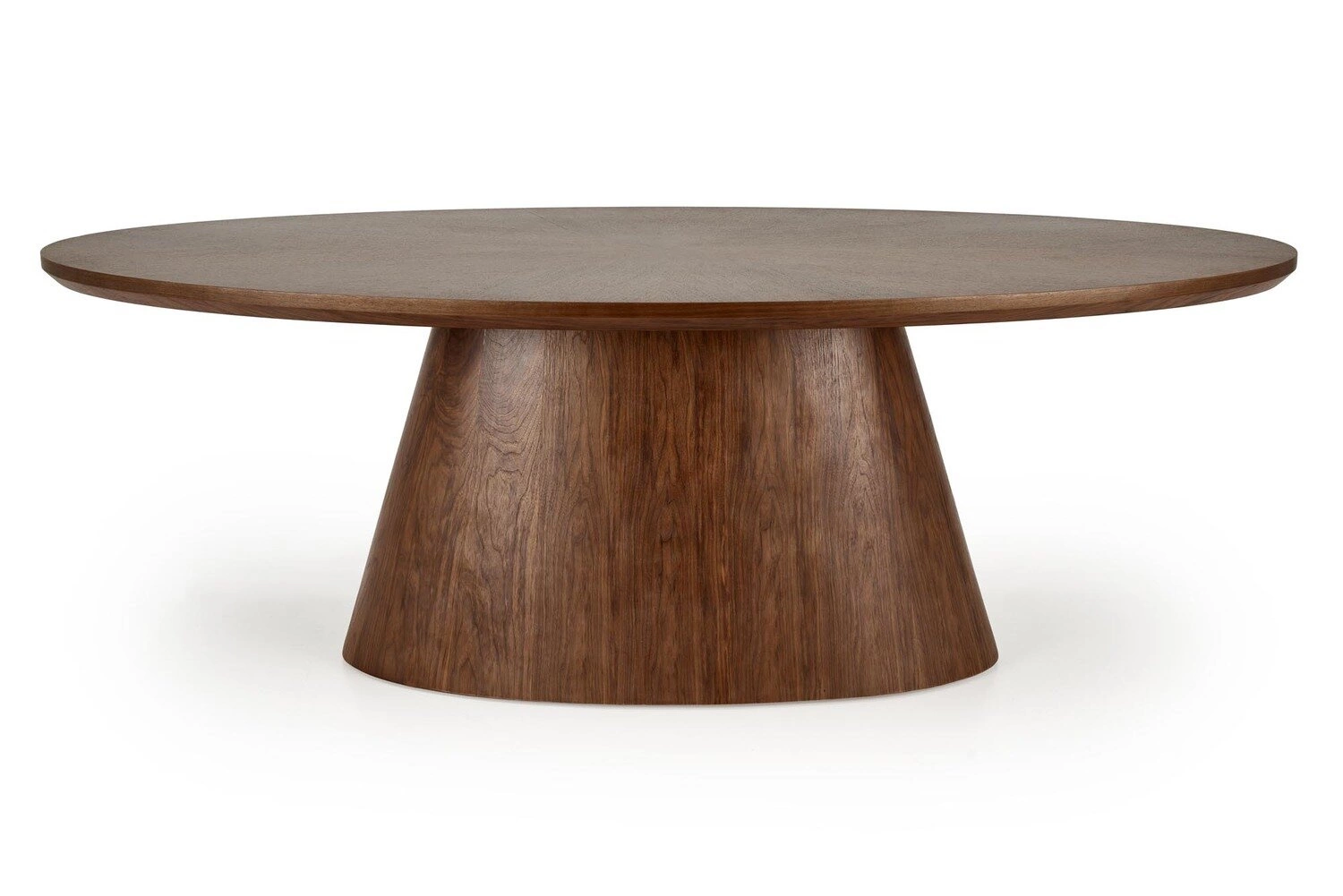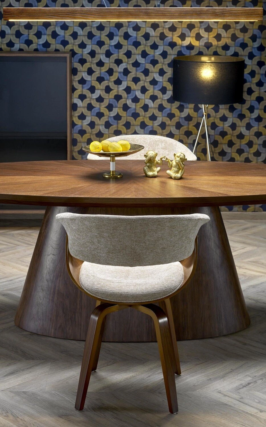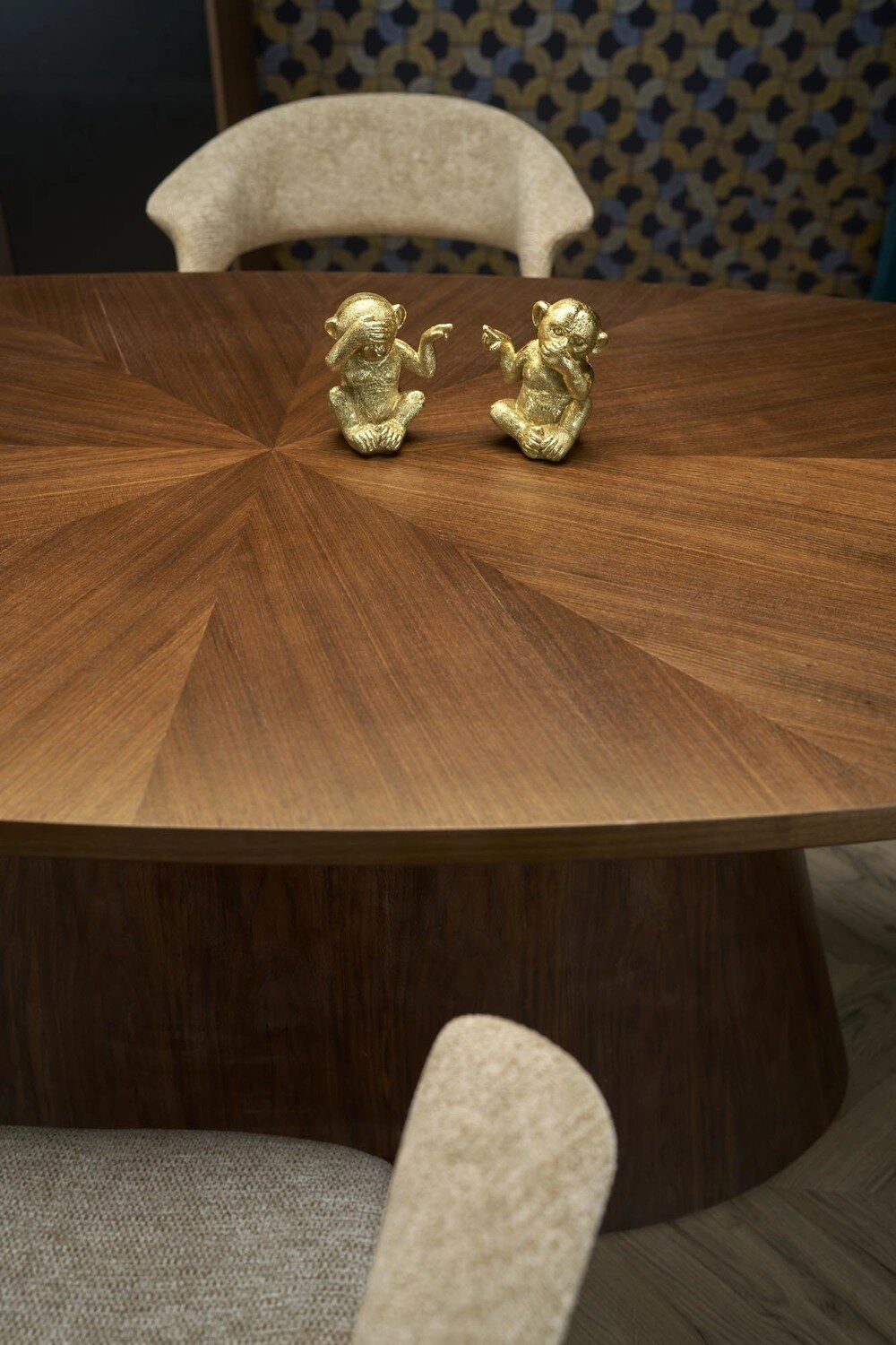 Oválný stůl Maryse od značky Intesi je ideální volbou pro ty, kteří hledají stylová a praktická řešení do jídelny nebo obývacího pokoje. Oválná deska o působivé délce 220 cm a přírodní odstín ořechu dělají z tohoto stolu moderní doplněk, který perfektně zapadne do elegantních a minimalistických interiérů. Jedna robustní noha umístěná uprostřed zajistí pohodlné užívání a dodává nábytku jedinečný charakter.